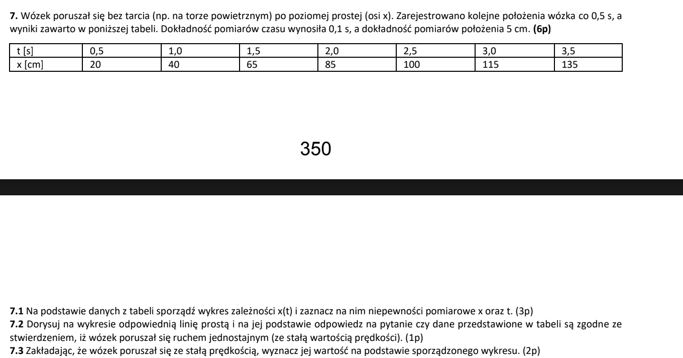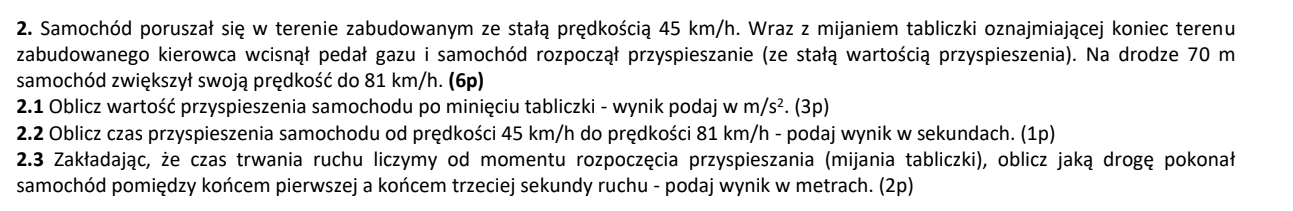 Nie wiem jak ocenić sobie zadanie 2.3 i 7.3. W zadaniu 7.3 skorzystałam z wzortu V=s/t, niby wychodzi na to samo co v=x/t(tak jak jest to w odpowiedziach) ale nie jestem pewna ile punktów powinnam za to dostać. Natomiast w zadaniu 2.3 policzyłam sobie prędkość na koniec 1s po czym zrobiłam wzór na droge w ruchu przyspieszonym gdzie pod Vo podstawiłam tą prędkość, a nie obliczałam żadnej z dróg 1/3 tak jak to było w odpowiedziach. Ile powinnam dostać za to punktów?