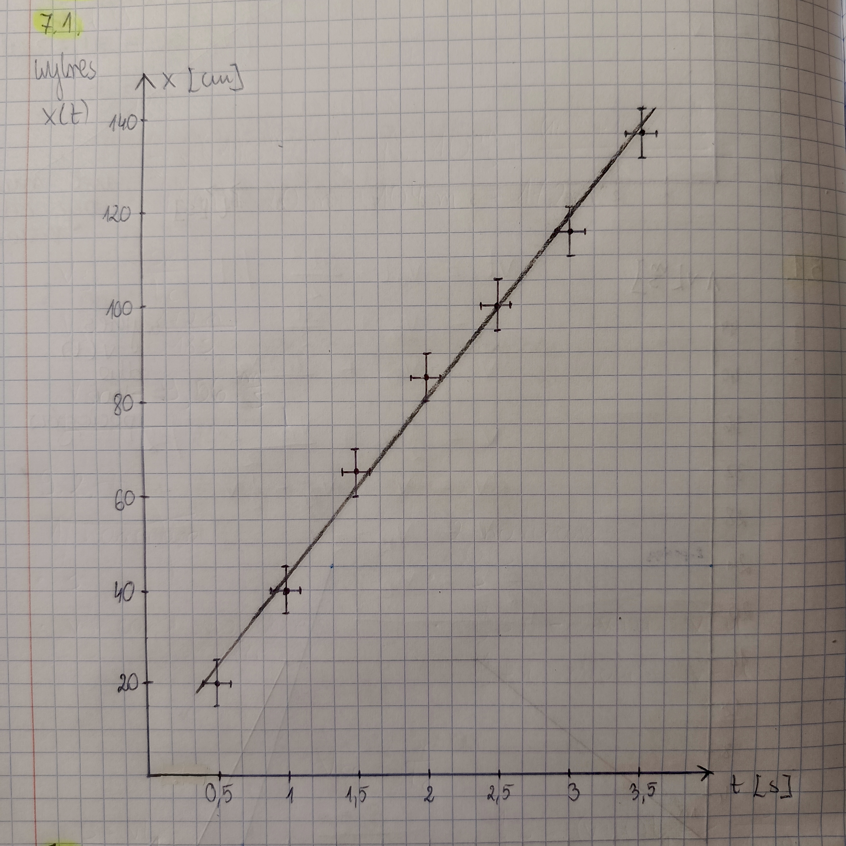 Czy na wykresie na zdjęciu, błędem byłoby zaznaczenie pomocniczej podziałki tylko na osi t tylko między początkiem osi a 0,5 (aby było łatwiej zaznaczyć niepewność pomiarową)?