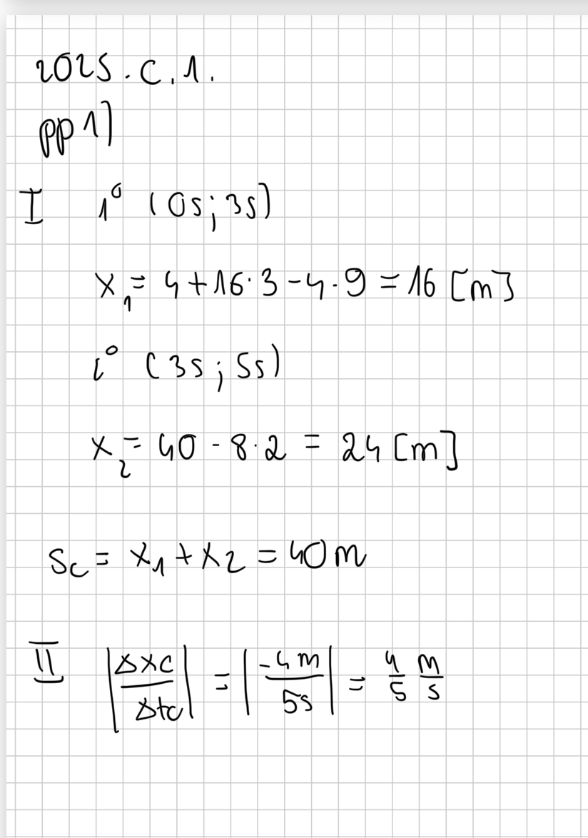 Tu jest ta kwestia rozróżnienia drogi od przemieszczenia. Zauważ, że podstawiając dane wartości t pod wzór na x(t) obliczasz położenie ciała w poszczególnych momentach w czasie. A trzeba zauważyć, że ciało podczas swojego ruchu zawróciło w opisywanej sytuacji. Z podanego w treści wykresu widzimy nawet, że to "zawrócenie" nastąpiło dla t = 2 s (do tego momentu x rosło, a po tym momencie x zaczęło maleć). My mamy tutaj obliczyć drogę przebytą przez ciało, więc trzeba będzie tu zsumować odległość przebytą przez ciało od 0 s do t = 2 s oraz odległość przebytą przez to ciało od t = 2 s do t = 5 s. I tak naprawdę nie trzeba nawet tutaj korzystać z podanych wzorów, można to stosunkowo łatwo odczytać z podanego wykresu. Droga w obu etapach to będzie różnica położeń naszego ciała na początku i końcu danego etapu. W razie dalszych wątpliwości proszę oczywiście śmiało pytać :)