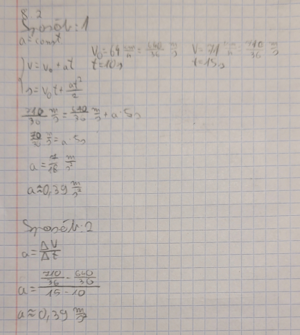 Witam, przychodzę z pytaniem odnośnie mojej odpowiedzi na zadanie 8.2. W kryteriach do zadań domowych jest podany wynik a=0,44m/s2, mój wynik się różni i nie rozumiem z jakiego powodu. I jeszcze jedno pytanie co do tego tematu: czemu sposób nr. 2 czyli sposób w którym wykorzystuje się definicje przyspieszenia jest lepiej punktowany w kryteriach do zadań domowych jeżeli zarówno sposób nr. 2 jak i sposób nr. 1 dają mi taki sam wynik?