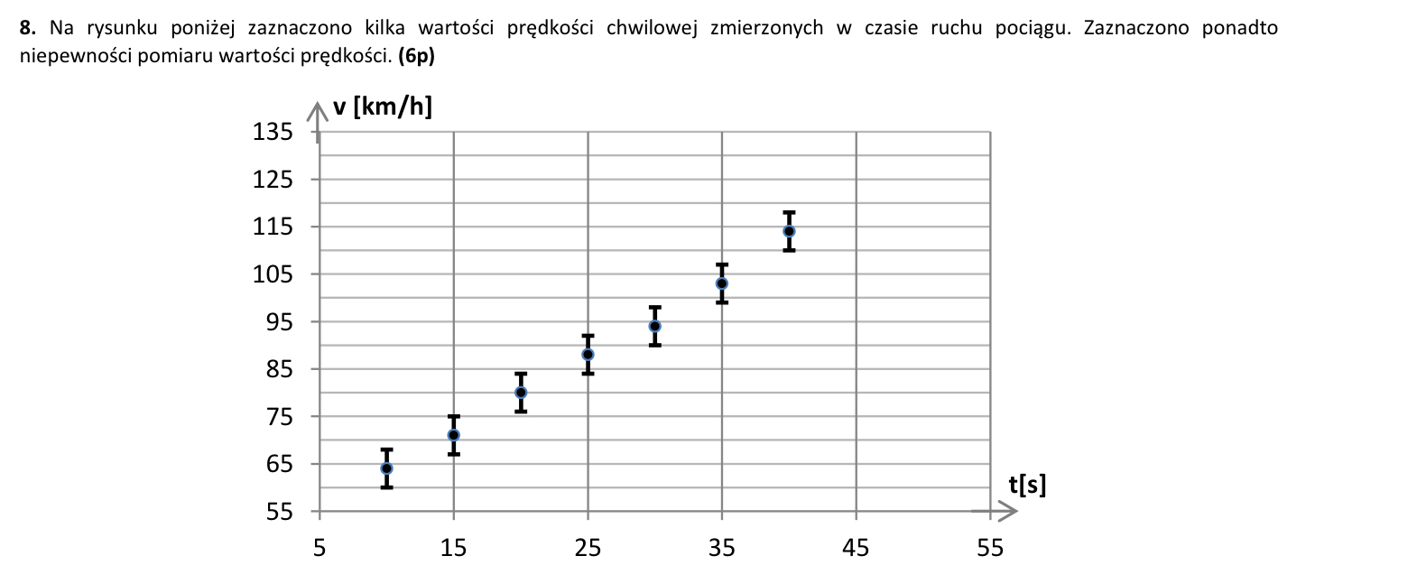 dokładnością do 1 s), w którym pociąg osiągnie prędkość o wartości 130 km/h. (1p)