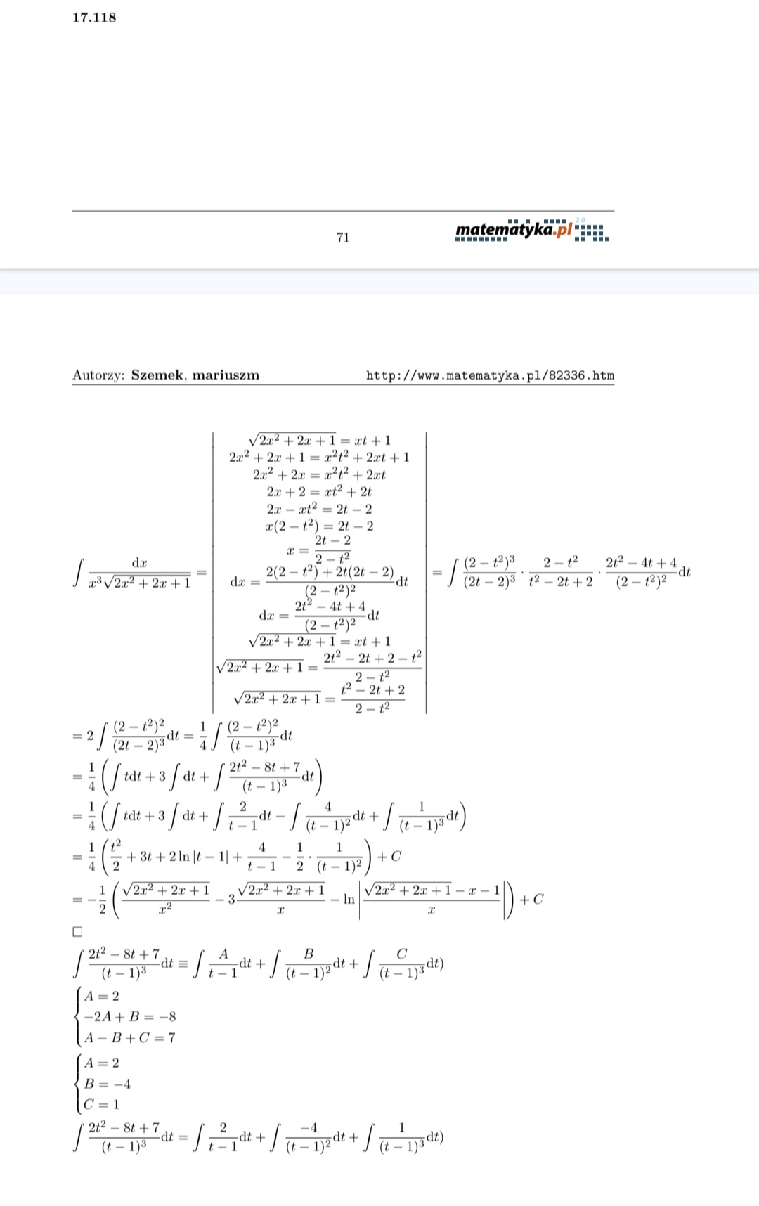 Ale przecież po przekształceniach t=[pierw(2x²+2x+1)-1]/x