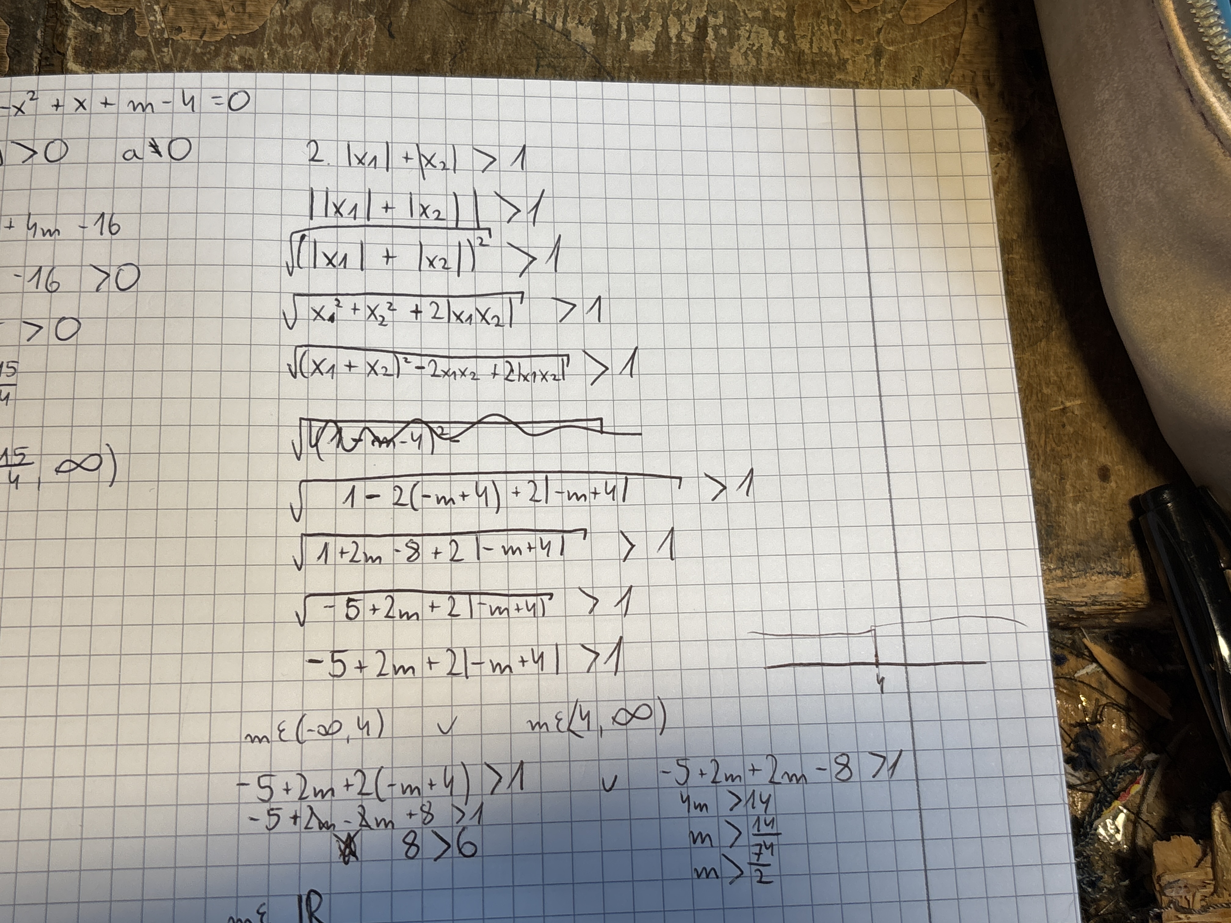 Ja osobiście skorzystałem z sztuczki i -m+4 zamieniłem na m-4 pod wartością bezwzględną możesz tak zrobić.