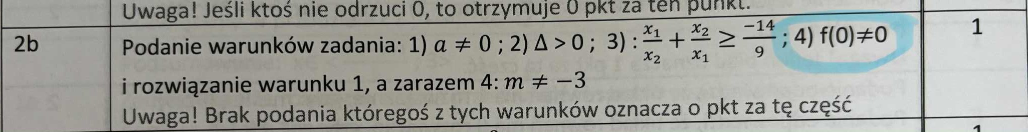 Ponieważ mamy w mianowniku x1 oraz x2 muszą być one różne od zero zatem pierwiastkiem funkcji nie może być zero