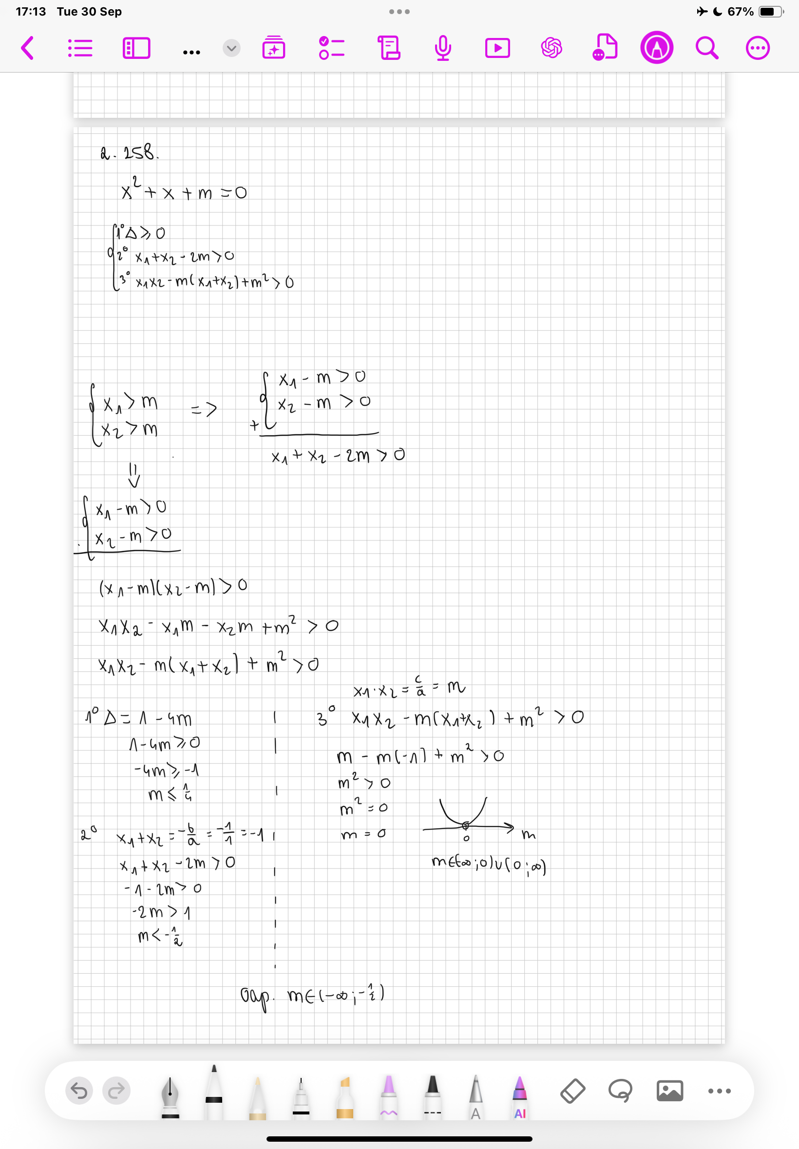 Przy rozwiązywaniu 3 warunku zgubiłaś m, bo jest tam m-m(-1)+m², czyli m+m+m²=2m+m² :)