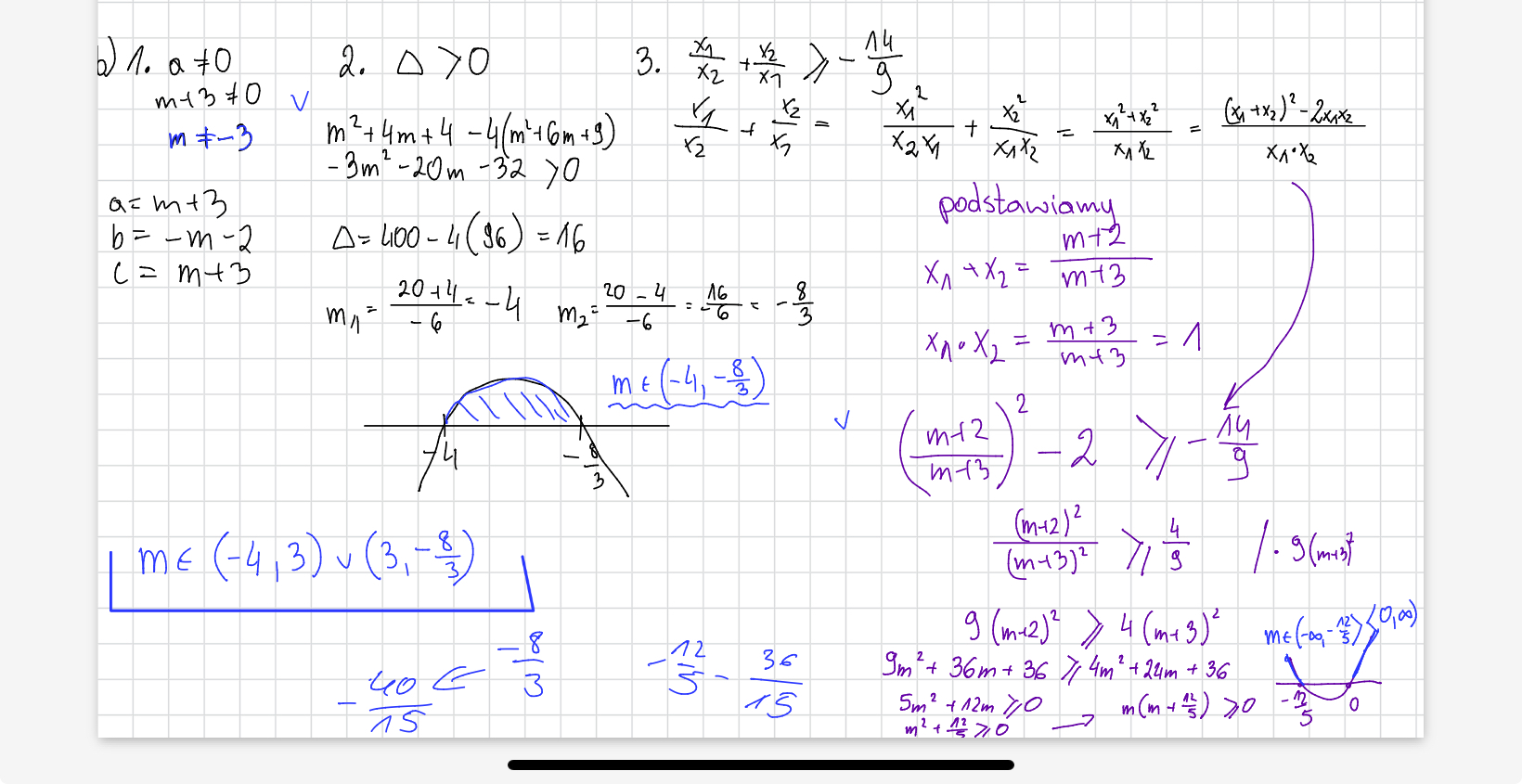 a skąd wam sie bierze to (m+2/m+3)^2 -2 >= -14/9 ?