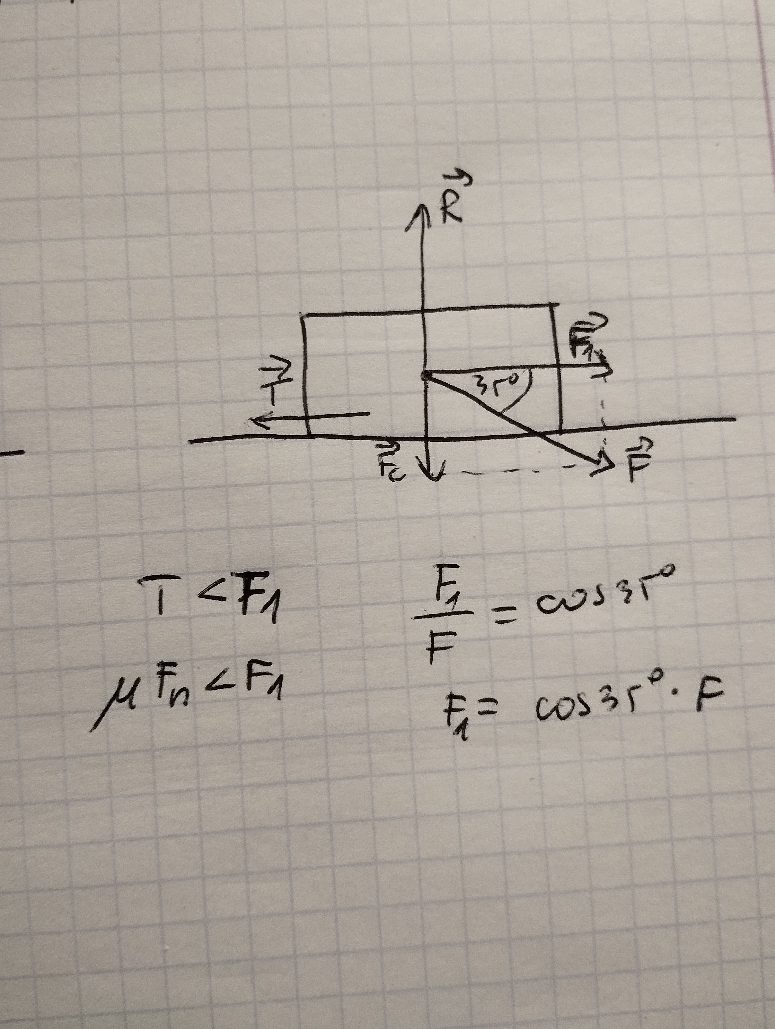 Siła nacisku składa się z Fc i Fy(czyli jednej ze składowych siły F). U Ciebie na rysunku Fy jest podpisana jako Fc. Więc tą siłę, którą masz narysowaną jako Fc to podpisz Fy i dorysuj jeszcze dodatkowo Fc. Suma Fc i Fy powinna być równa sile reakcji R, więc dopasuj odpowiednio długości wektorów.