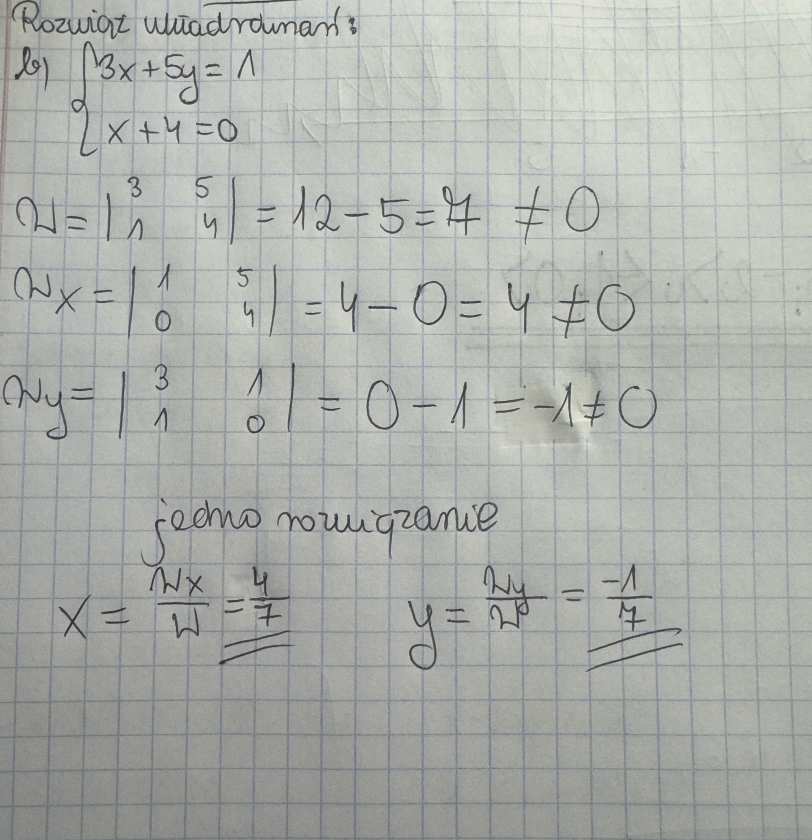 Wyznacznikiem przy "y" nie jest "4". Sprawdź jak wyglądają wzory dla wyznaczników.