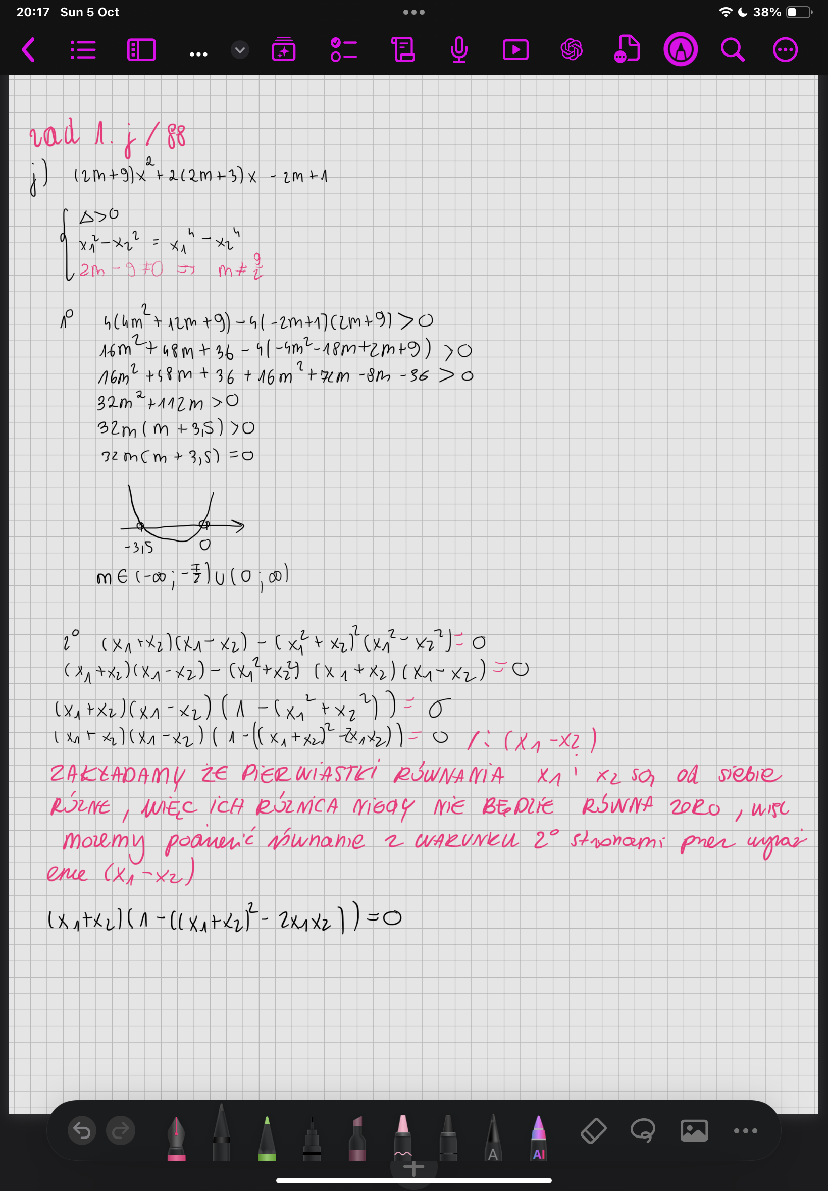 No tak, skoro z założenia pierwiastki mają być różne to x1 - x2 !=0 zatem możemy dzielić. Jest ok.