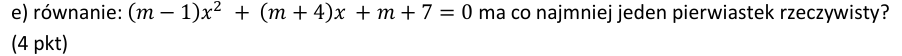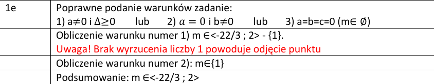 Więc dla m=1 istnieje jedno rozwiązanie, czyli wliczam go do podsumowania: m∈<-22/3; 2>, dostaję to samo co w odpowiedziach.