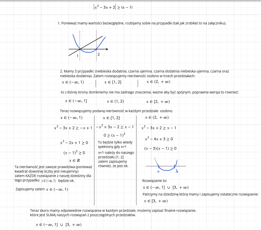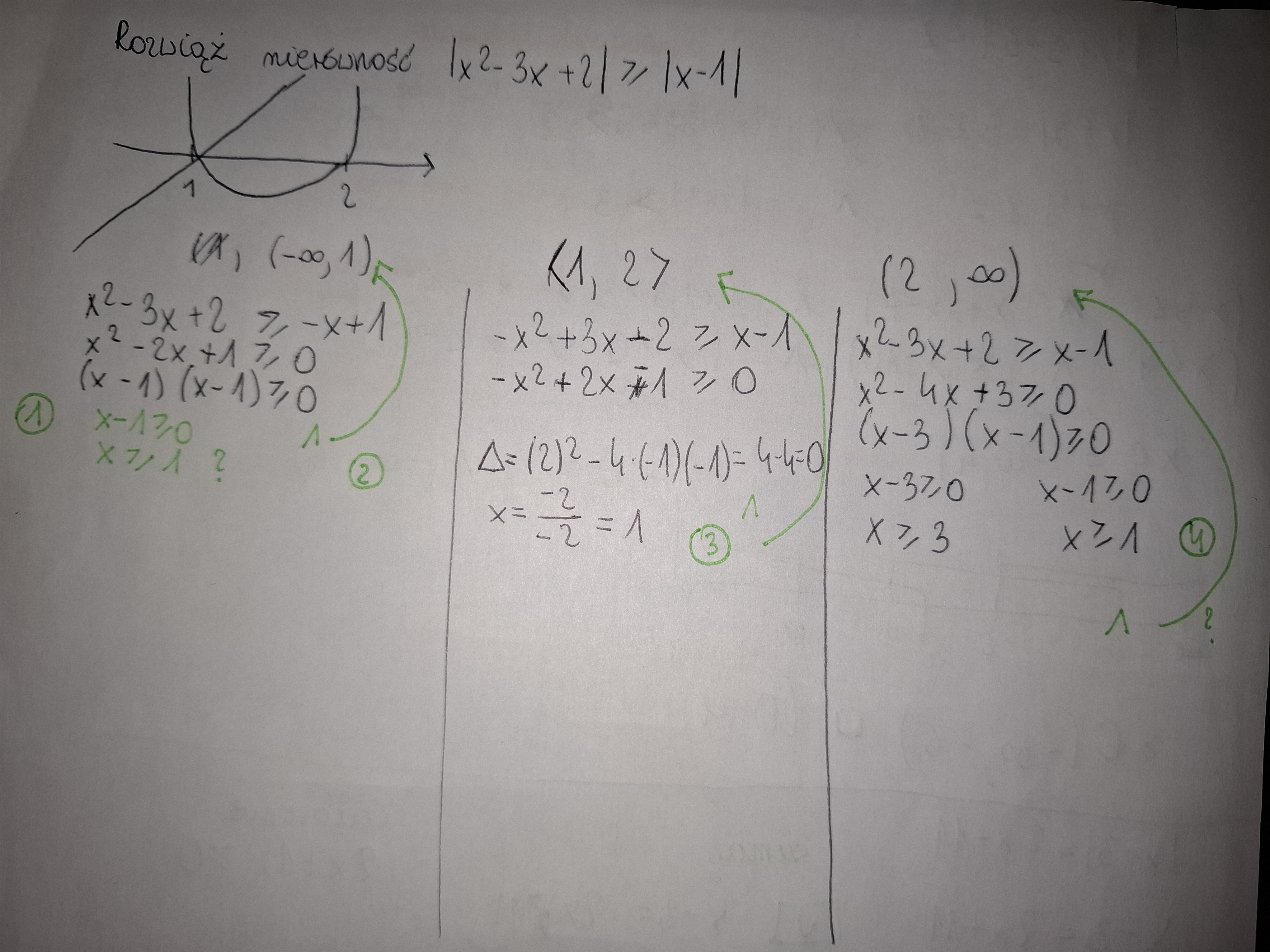 Rozwiąż nierówność |x²-3x+2|>=|x-1|