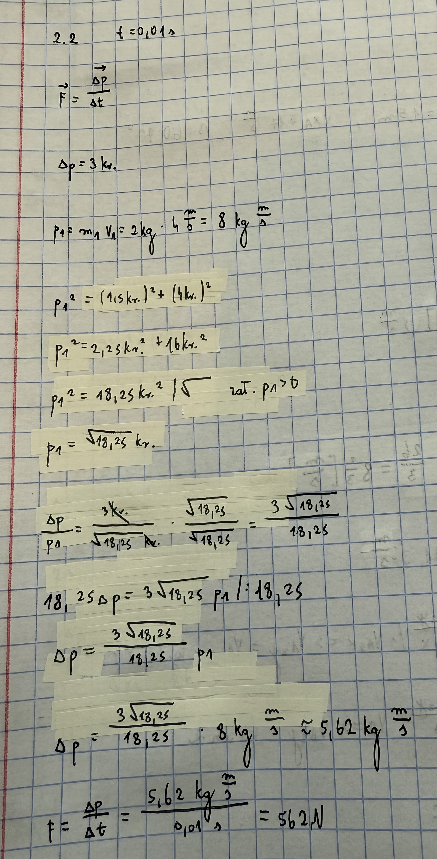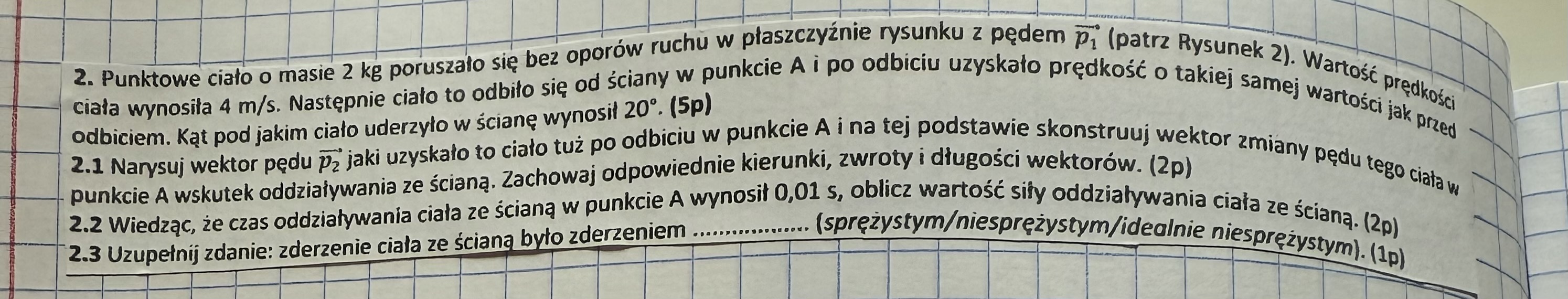 nie mogę znaleźć u ciebie błędu, aczkolwiek ja liczyłem to trochę inaczej: F=Δp/Δt, Δp=2p1sin20 = 2*8*0,342 = 5,472 , F = 5,472/0,01 = 547,2N ( zgodne z treścią)
