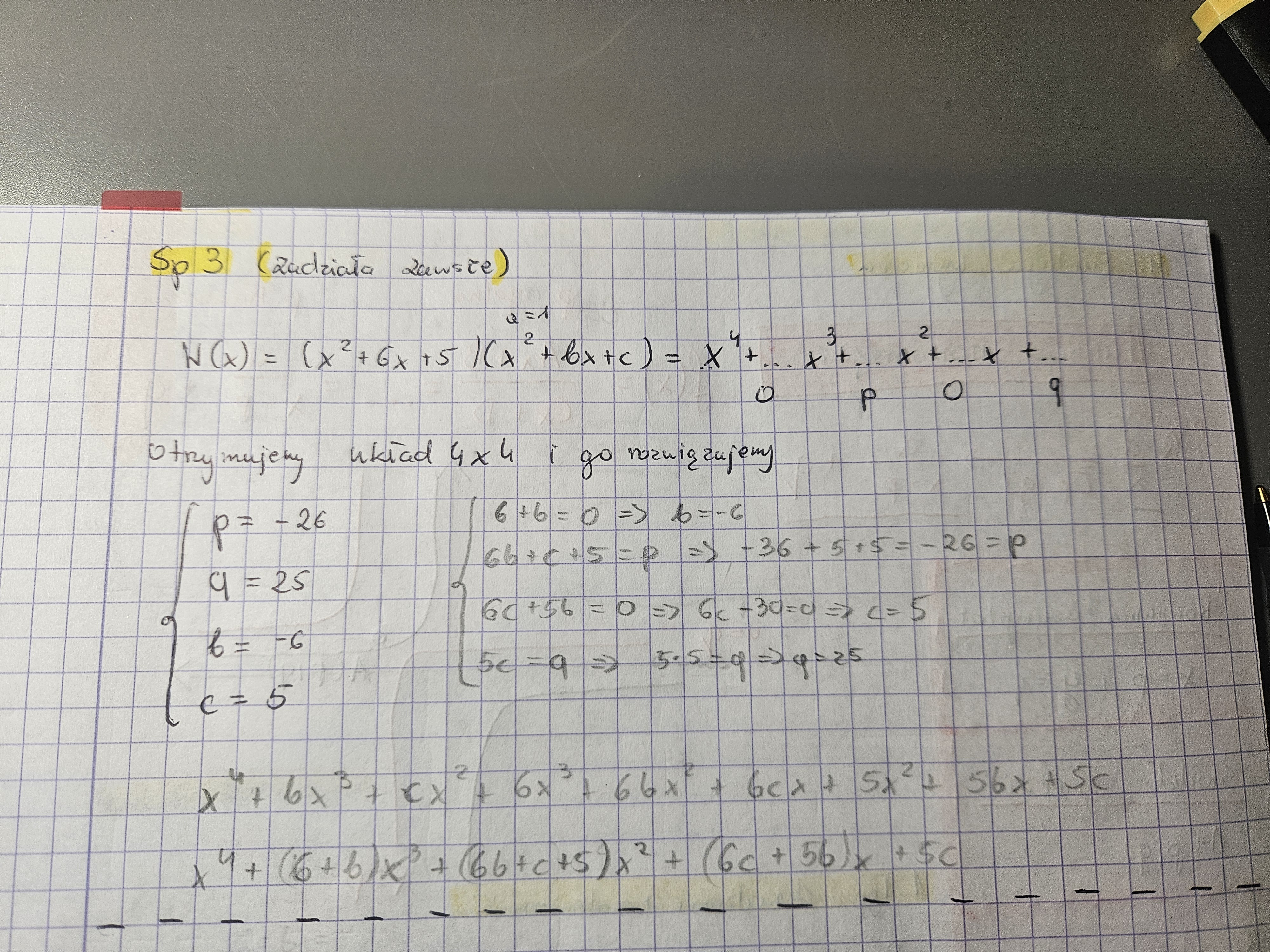na dole ołówkiem wymnożyłam ten wielomian tak jak ty i później porównywałam współczynniki