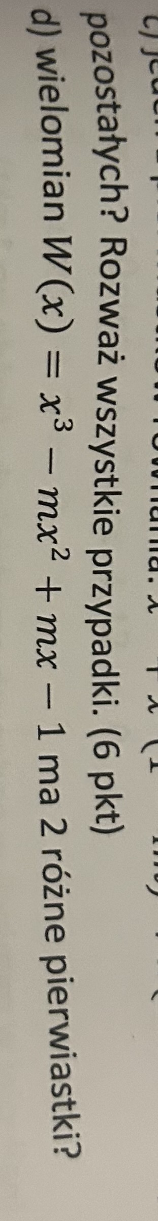 Dla jakich wartości parametru „m” wielomian W(x)= x^3-mx^2+mx-1