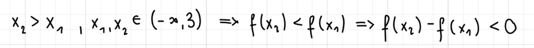jeżeli funkcja jest malejąca to podstawimy x2 który jest wiekszy niz x1 do funkcji to wynik z x2 wyjdzie mniejszy niz z x1 i jak wyniki odejmimy to bedzie to mniejsze niż 0