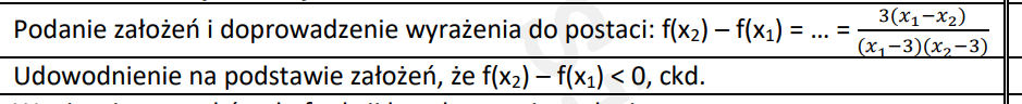 Ale x₁ < x₂, więc wyrażenie w liczniku 3(x₁-x₂) <0, zatem licznik jest ujemny, przy czym mianownik jest faktycznie dodatni, dlatego cały ułamek jest ujemny.