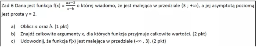 Już rozumiem o co chodzi nie zwróciłem uwagi na to że że skoro ma to być funkcja malejąca to dla coraz większych x jej wartość f(x) jest coraz mniejsza dlatego moje rozważania do niczego nie prowadziły. Rozpatrywałem to tak jakby to była funkcja rosnąca mój błąd.