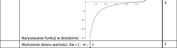 Hejka, więc musisz sobie podstawić do wzoru w postaci kanonicznej to co masz na końcach przedziałów w dziedzinie, więc dla x= 11/7, f(x)= 1/4 dla x=1 w mianowniku wychodzi ci zero i z granic wyliczasz z której jakby strony jest to zero tutaj jest od -niesk. i to jest twój zbiór wartości, wyliczasz jeszcze pare punktów z dziedziny podstawiając je tak samo do wzoru, zaznaczasz w układzie współrzędnych i rysujesz krzywą w dziedzinie. Mam nadzieję, że pomogłam :)