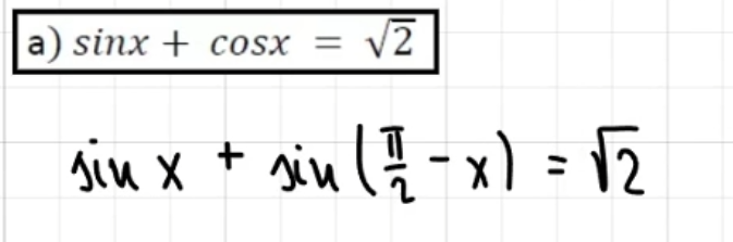 Możesz sobie sprawdzić oba i wyjdzie na końcu cos(x-45) = 1 lub sin(x+45) = 1 => x = pi/4 + 2kpi
