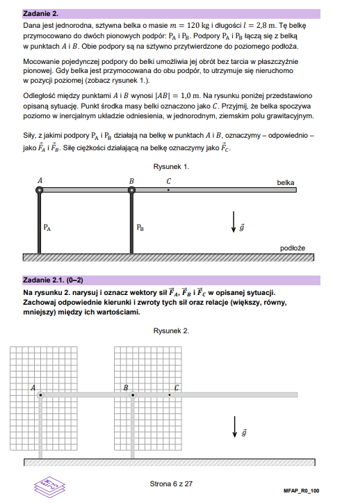 Siła reakcji to siła z jaką "podłoże" oddziałuje na dane ciało. Tutaj belka jest podpierana w punktach A i B przez te pionowe podpory, więc siłami "reakcji" działającymi na belkę są właśnie te siły Fa i Fb (sama "ziemia" bezpośrednio nie styka się z belką, więc nie działa na nią żadną siłą reakcji). Nie ma tutaj zatem już żadnej dodatkowej siły R, są tylko Fc, Fa i Fb.