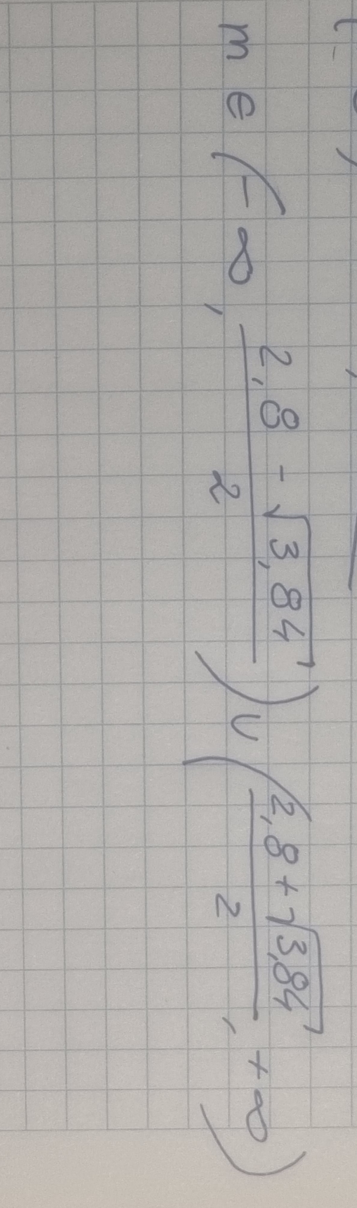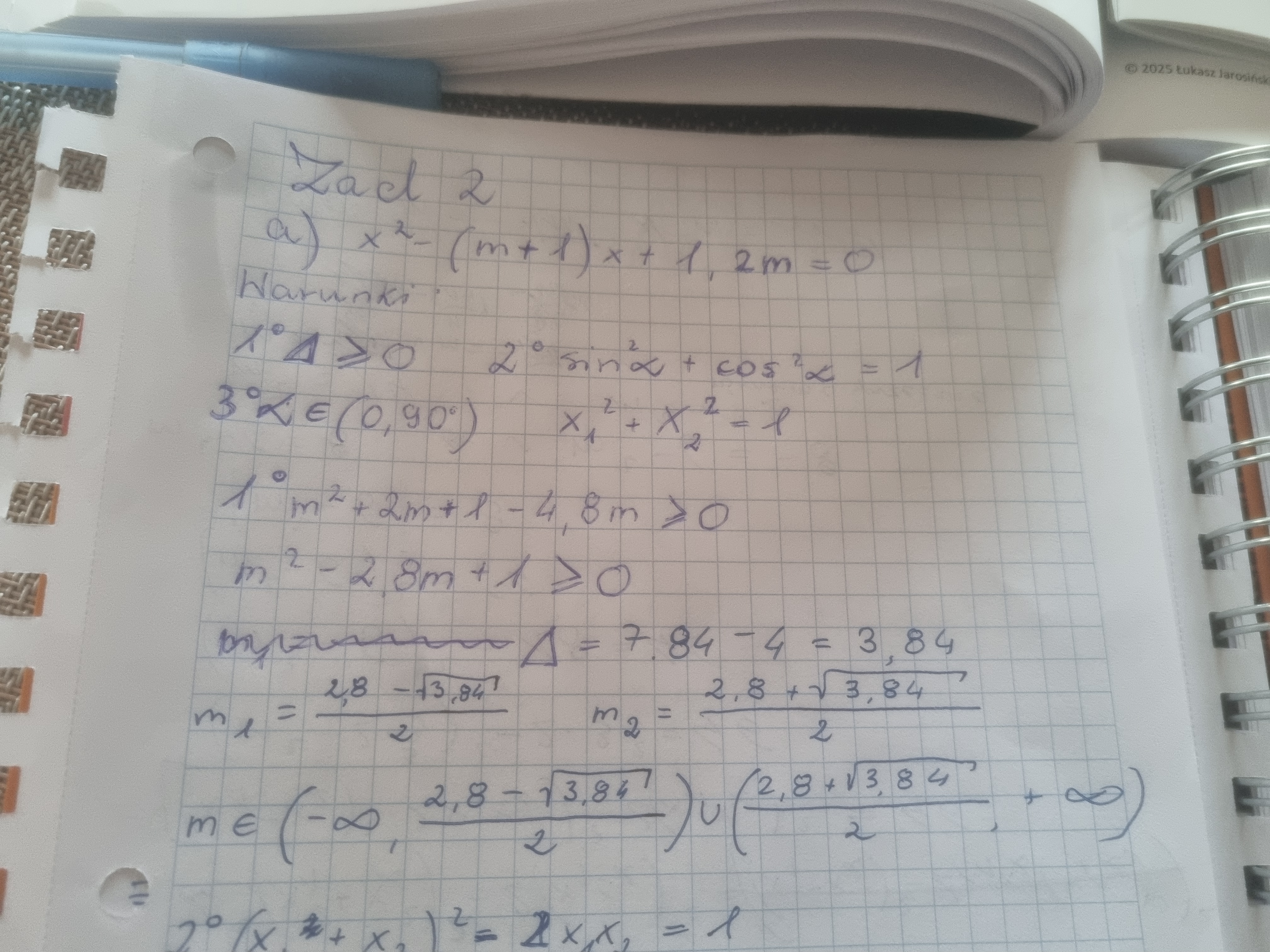 "Bo jak go się rozwiąże to wychodzi m1=2.8-pierwiastek z 3.84/2 w m2 tak samo tylko +"