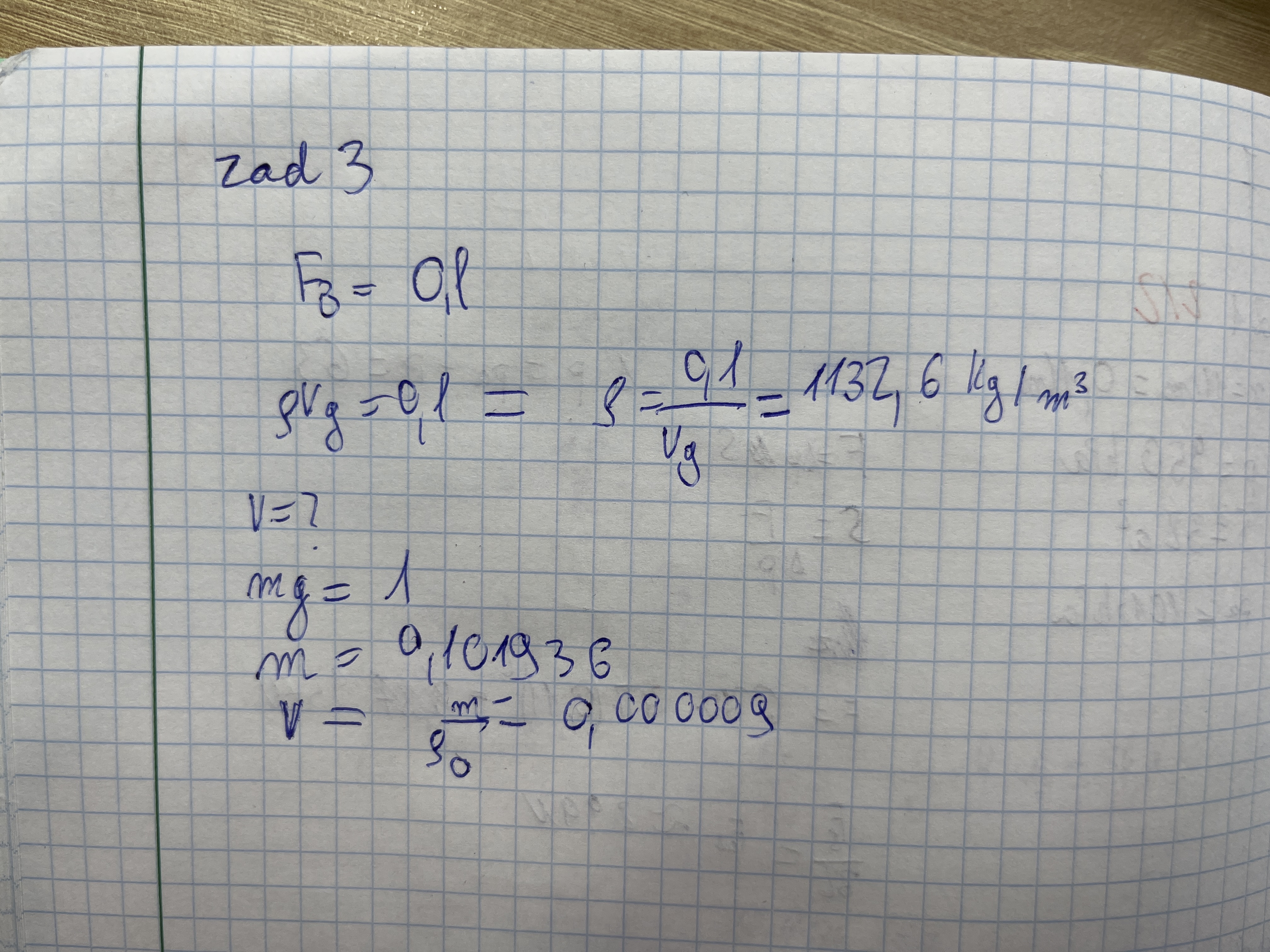 To przez zaokrąglanie. Jeśli wyznaczysz wzor na gęstość i wszystkie dane wstawisz dopiero na końcu to wynik bedzie bliższy poprawnej odpowiedzi.