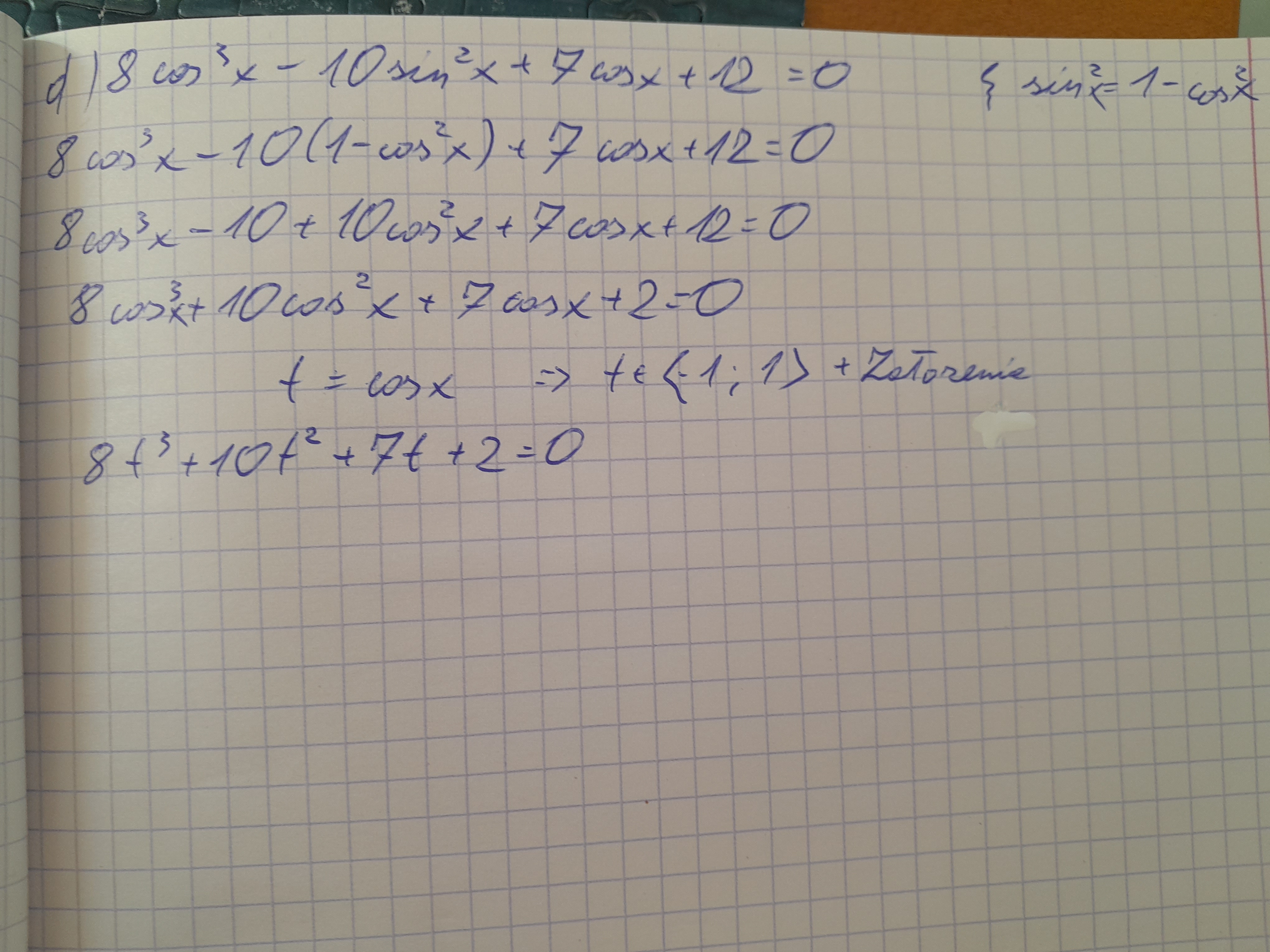 To jest wielomian stopnia 3. Miejsc zerowych szukasz spośród dzielników wyrazu wolnego oraz współczynnika przy najwyższej potędze. Potem możesz wykonać dzielenie pisemne lub schematem Hornera. Polecam nadrobić lekcje o wielomianach :)