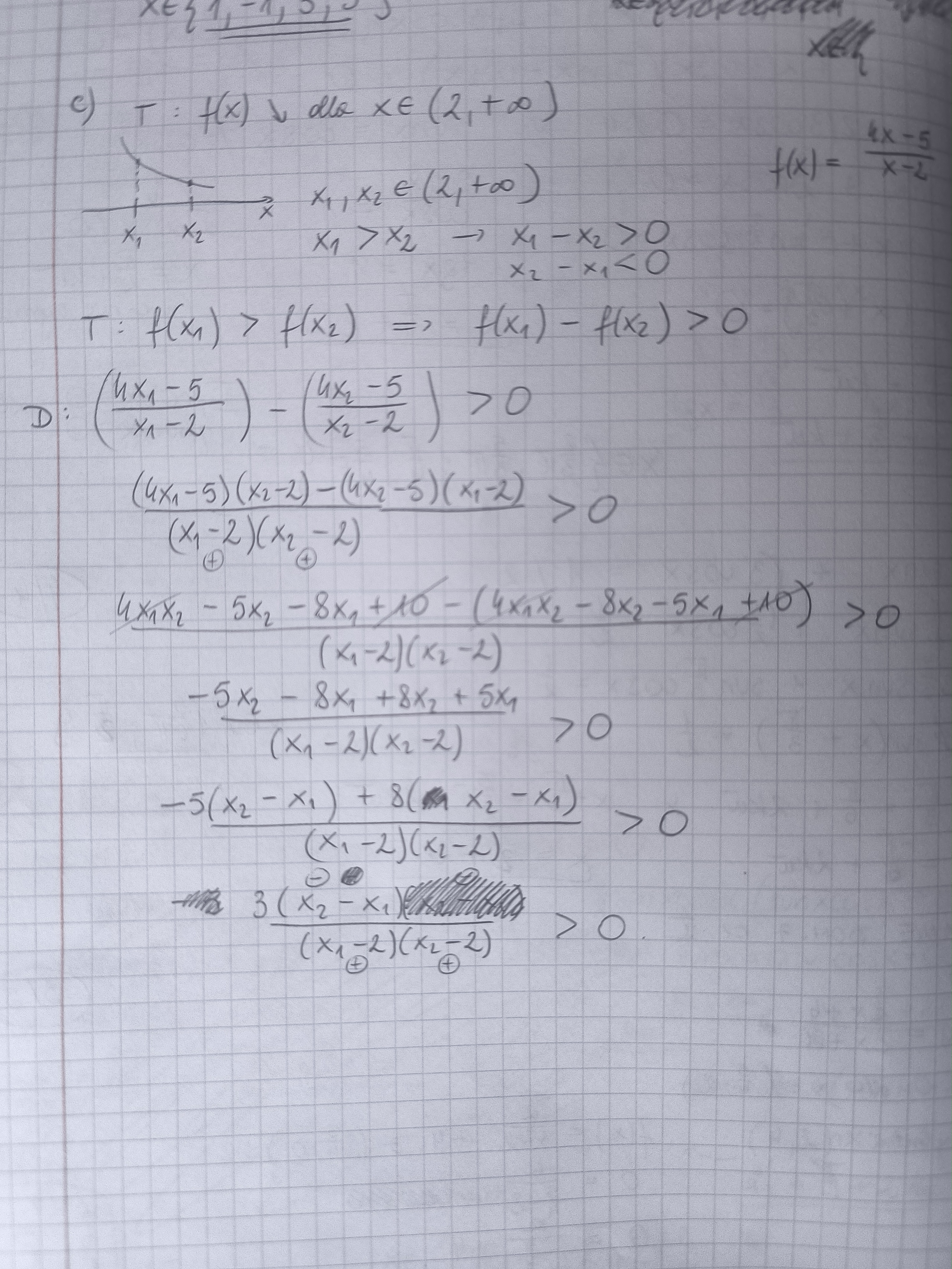Sam dowód jest dobrze zrobiony. Problem jest na samej górze, w założeniach, gdzie napisałaś x1 > x2. Bazując na tym rysunku co jest po lewej stronie to x1 < x2, bo oś OX działa jak oś liczbowa, tj. zawsze argument po lewej stronie jest mniejszy od tego po prawej.