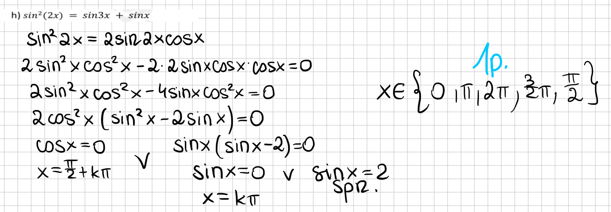 Oprócz tego ok, przez przypadek wyszły dobre odpowiedzi bo rozwiązanie cos x=0 zawierało rozwiązania sinx=1