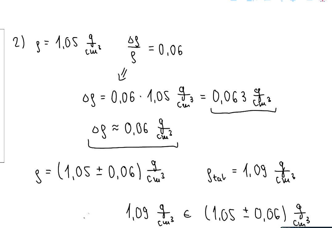 Tak, formalnie jeśli zaokrąglamy ją tutaj do drugiego miejsca po przecinku to w istocie powinna ona zostać zapisana jako 0,07. Nie ma to oczywiście wpływu na samą odpowiedź na pytanie czy wyznaczona wartość gęstości jest zgodna w granicach niepewności z wartością tablicową i co więcej na maturze najprawdopodobniej nikt by nawet się nie przyczepił do zaokrąglenia tej niepewności w dół, natomiast dziękuję za zwrócenie na to mojej uwagi!