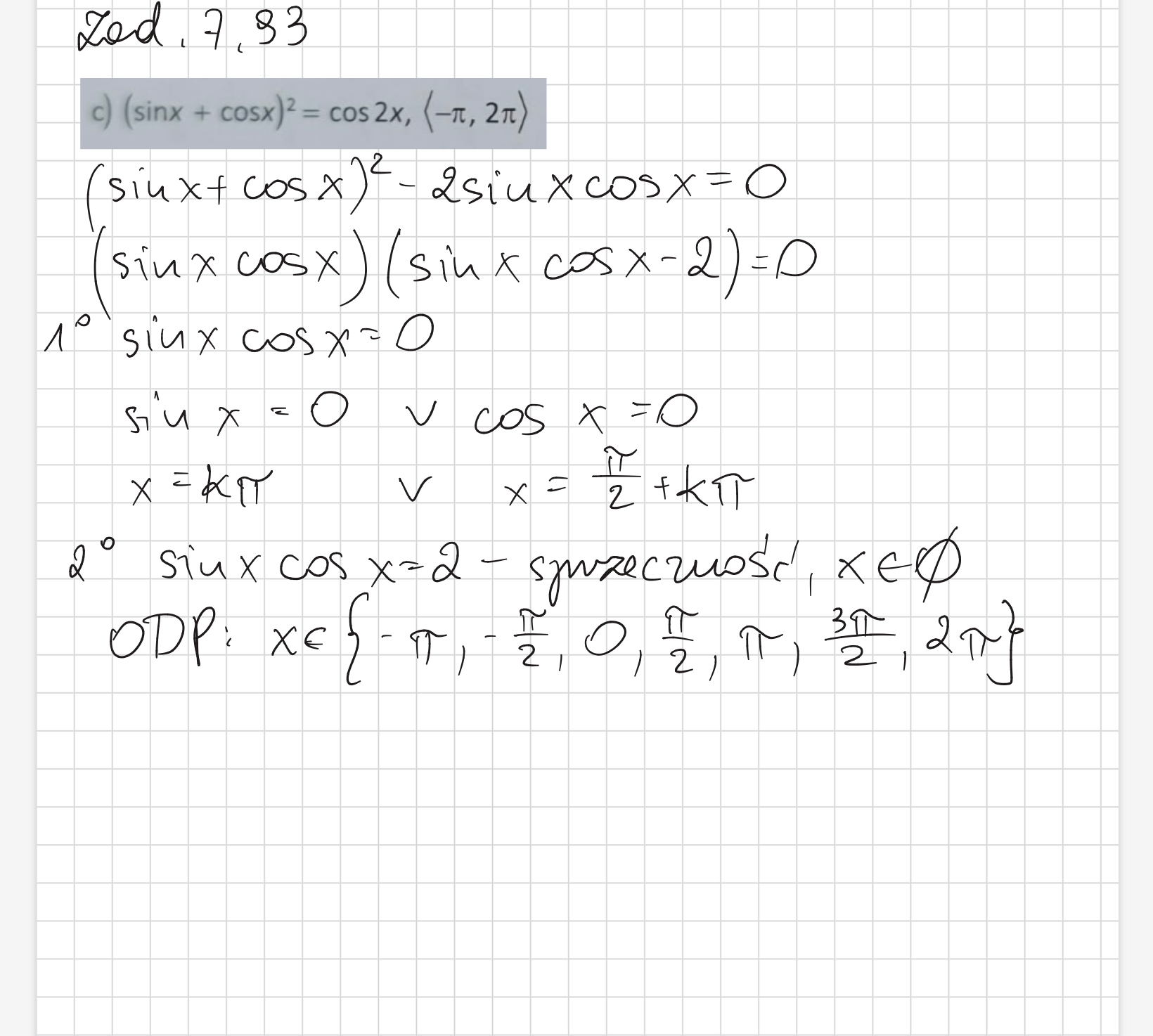 Użyłaś w pierwszej linijce wzoru na sin2x przy cosinusie, zobacz w karcie wzorów są 3 różne możliwości jak to poprawnie rozwinąć