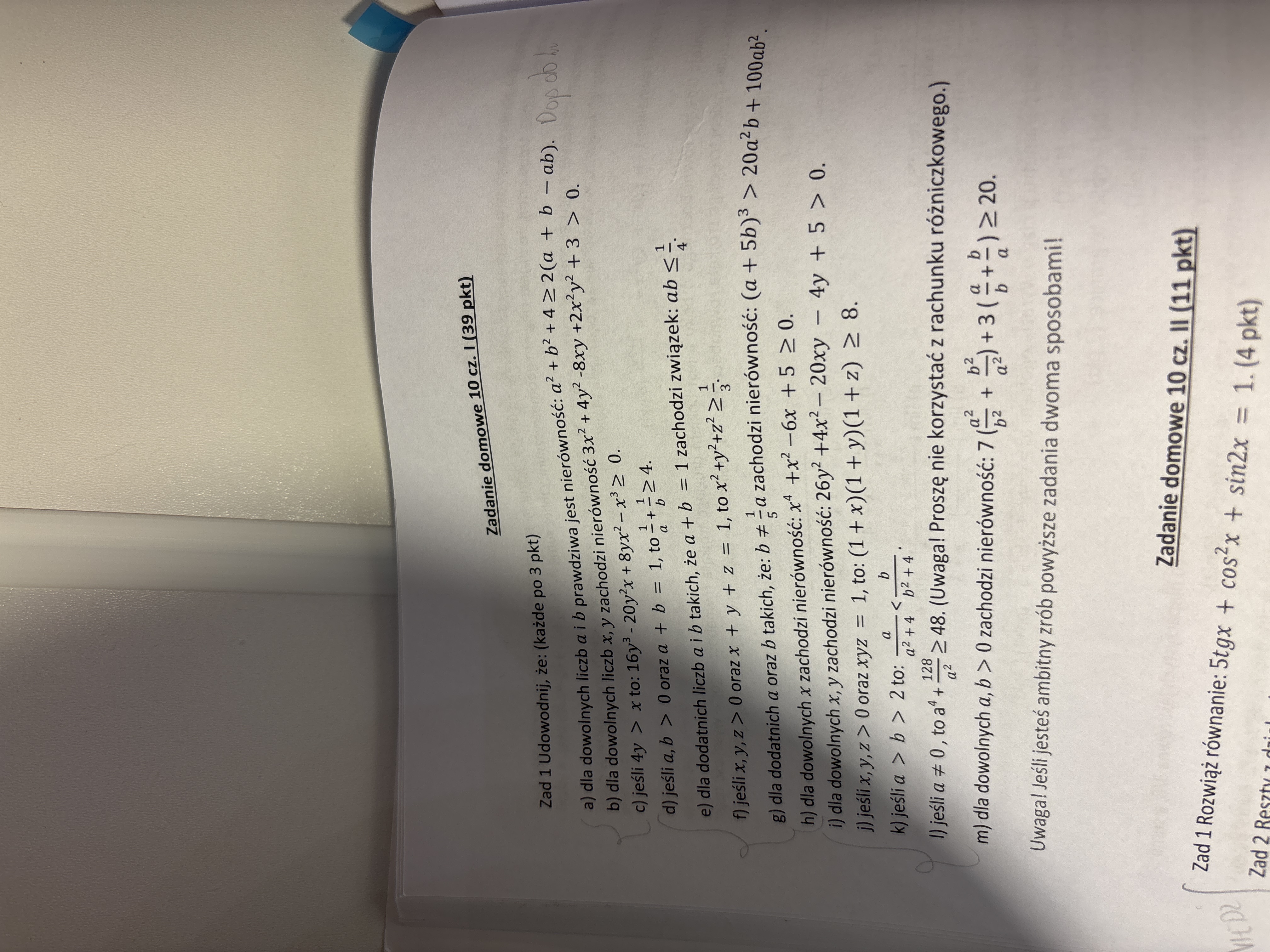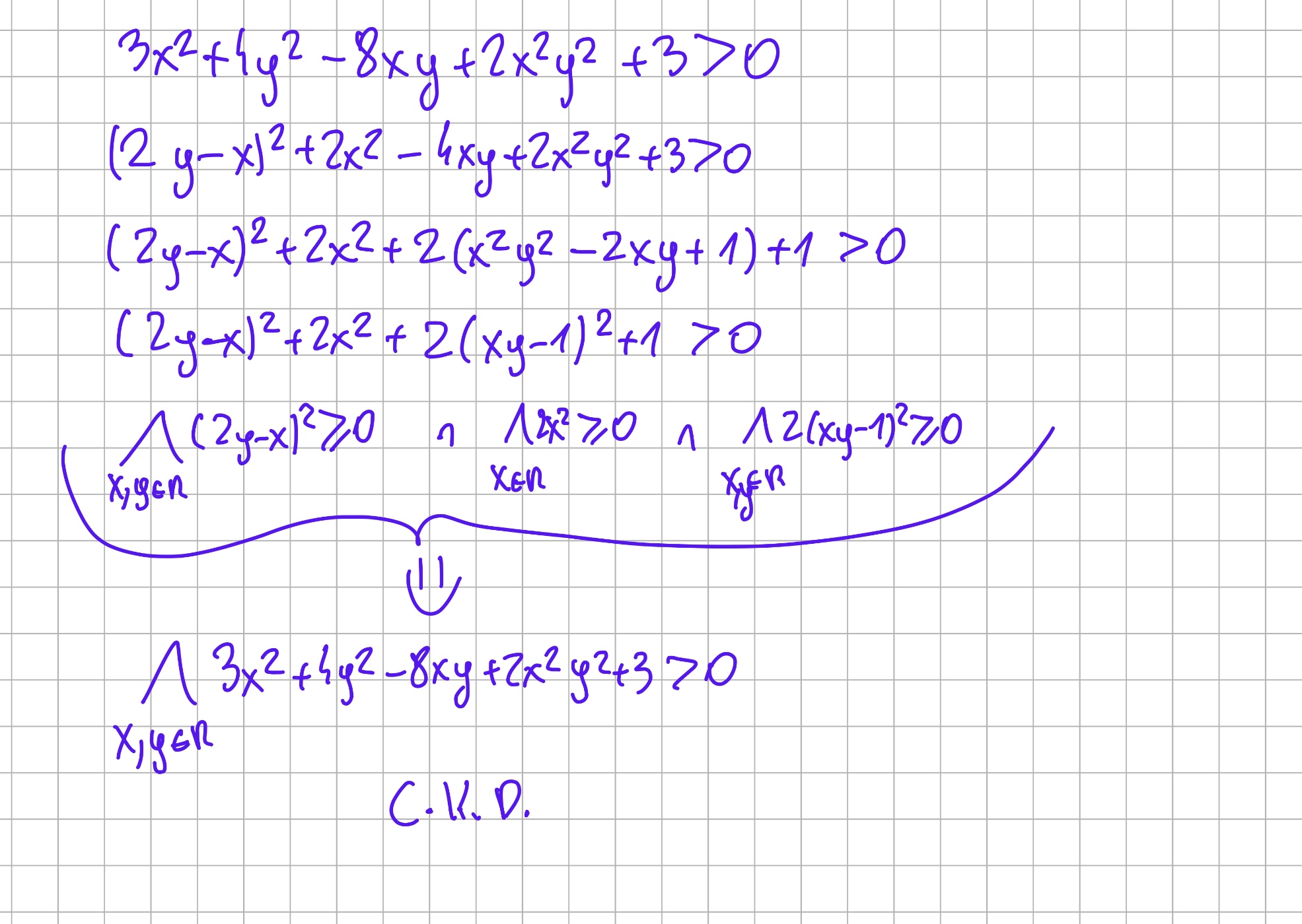 hej, aby rozwiązać to zadanie musisz zauważyć dwa wzory skróconego mnożenia i potem jako iż kwadrat liczby rzeczywistej jest zawsze dodatni wychodzi nam, że ta nierówność jest prawdziwa.