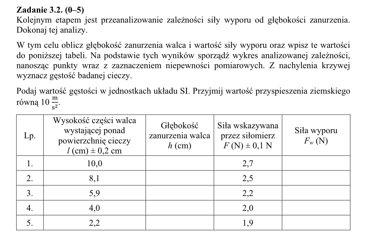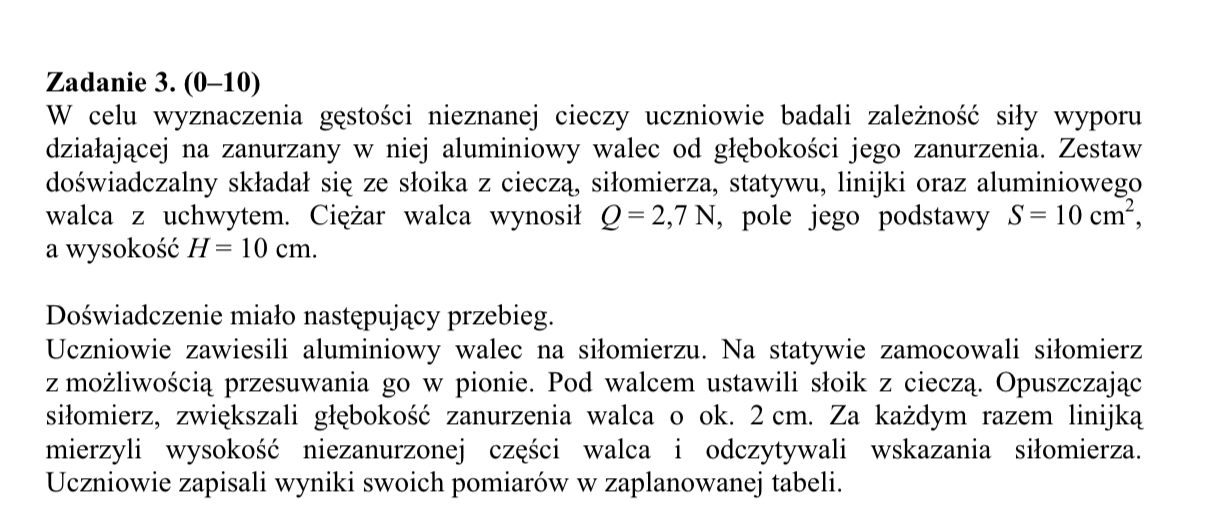 Jak obliczyć siłę wyporu w tym zadaniu? W kluczu odpowiedzi do tej matury dostępnym online nie jest to wyjaśnione :(