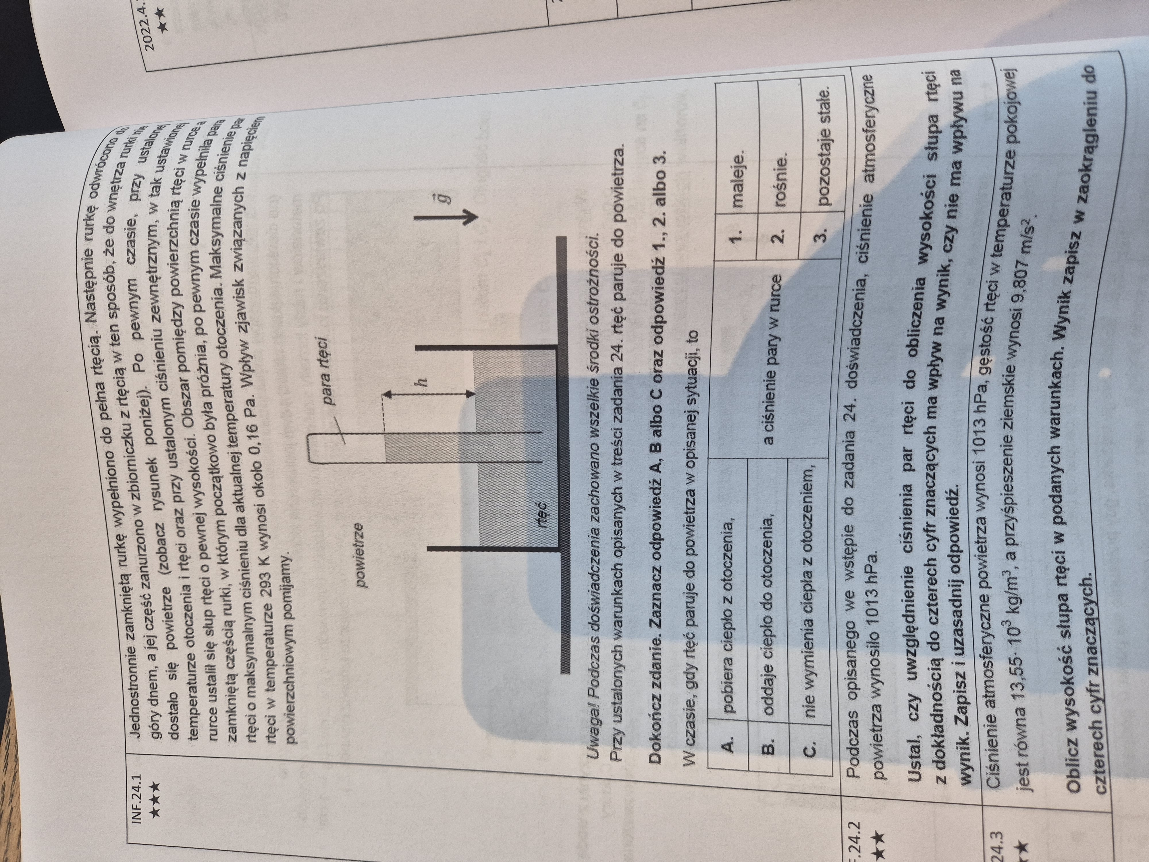 To wynika z treści zadania - powiedziane tam jest, że "(...) po pewnym czasie wypełniła para rtęci o maksymalnym ciśnieniu dla aktualnej temperatury otoczenia. (...)". I w samym już poleceniu mamy napisane, że pytanie odnosi się do sytuacji opisanej w treści zadania. Skoro zatem w rurce mamy już pary rtęci o maksymalnym ciśnieniu, to ono się już nie zmienia (ciągle jest maksymalne).
