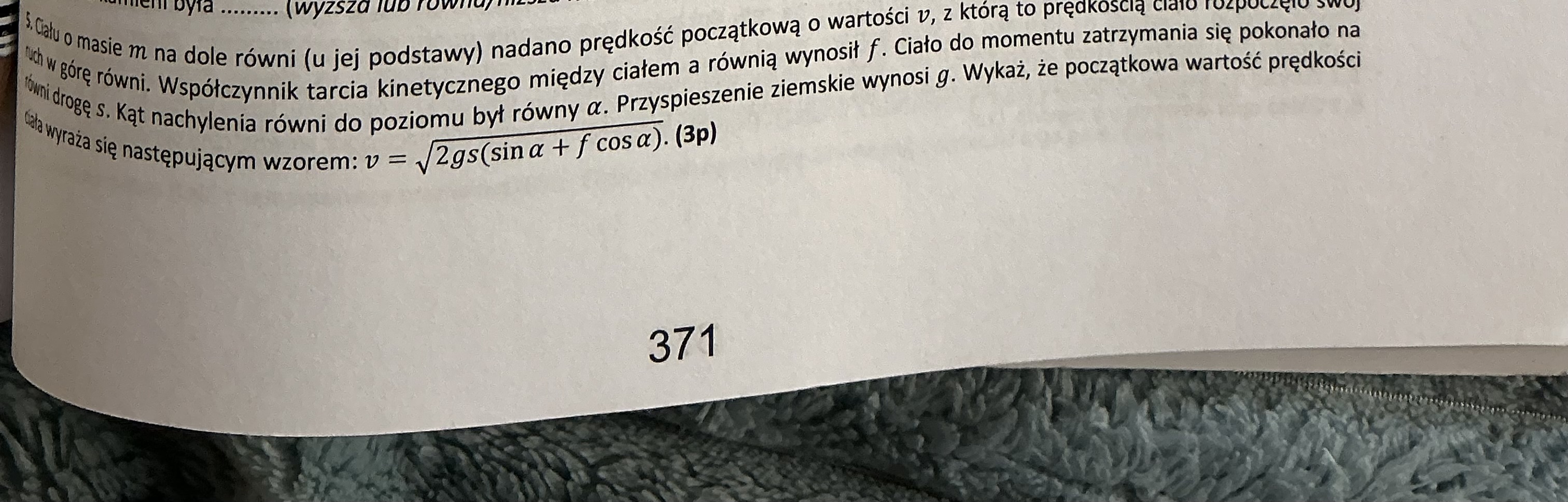 Ciało porusza się zgodnie z treścią w górę równi, więc zarówno Fcx, jak i siłą tarcia T działają w dół równi, zatem Fwyp = Fcx + T. Stąd pojawi się tam plus a nie minus :)