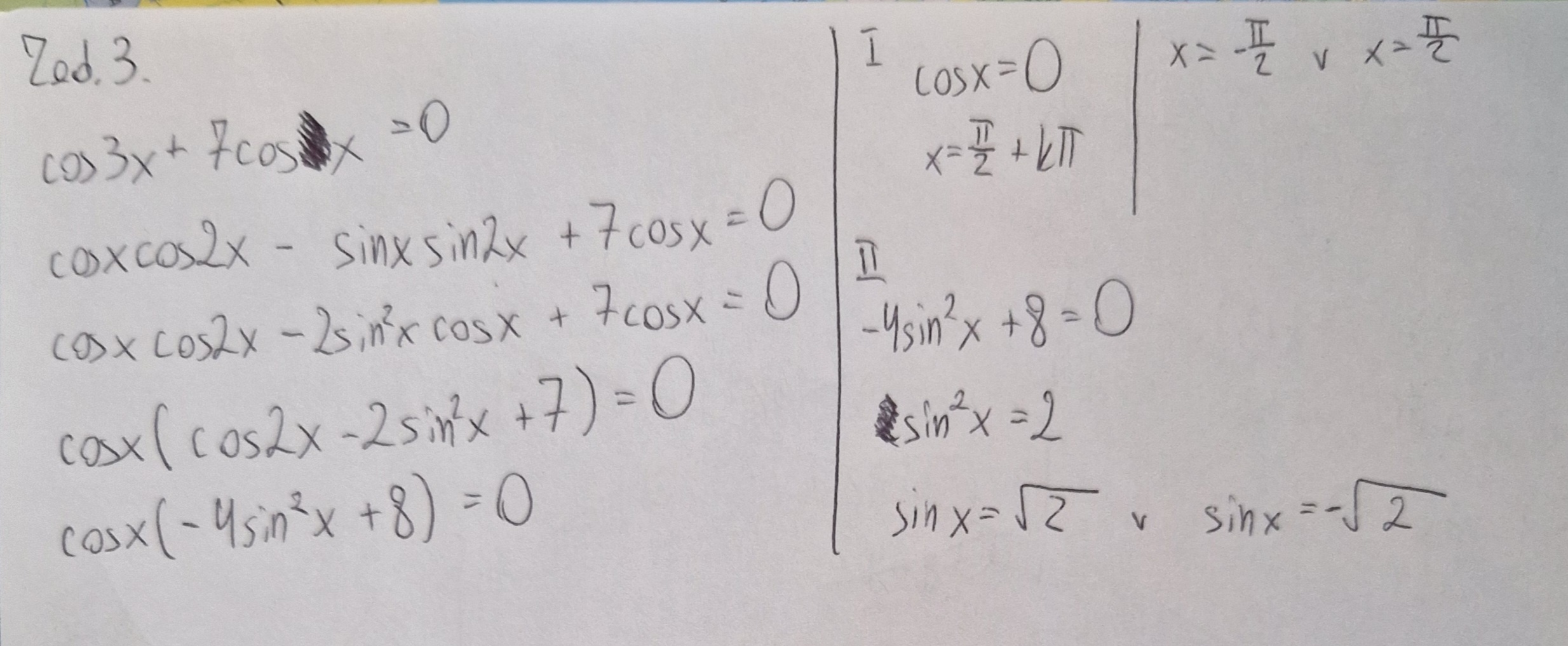 zrobiłam tak samo, tutaj chodzi o to, że te rozwiązania po prostu nie mieszczą się w zbiorze wartości sinusa, bo pierwiastek z 2 to więcej niż 1 (no i tak samo -pierwiastek z 2 to mniej niż -1)