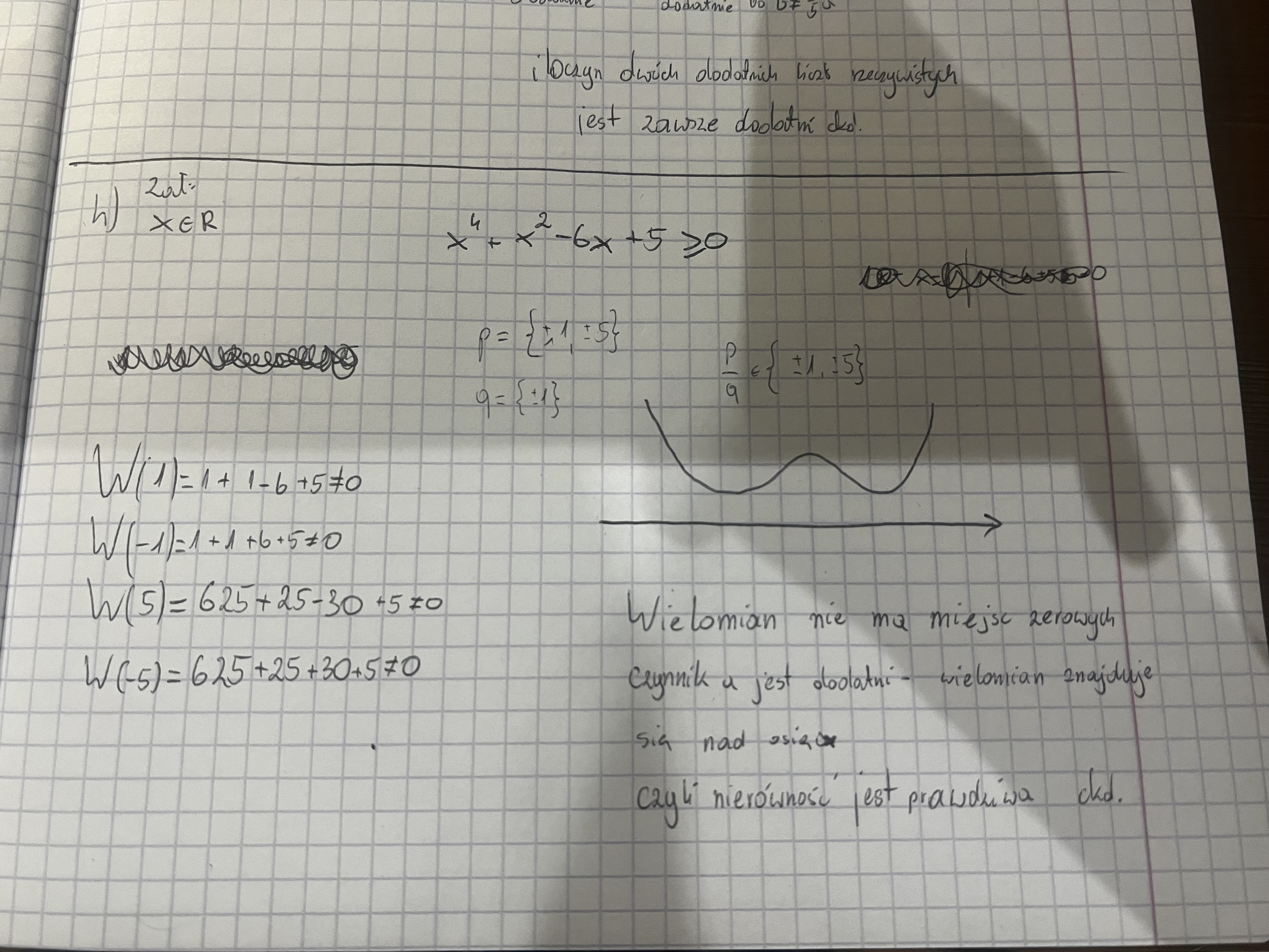 Udowodnij, że dla dowolnych x zachodzi nierówność x^4+x^2-6x+5≥0