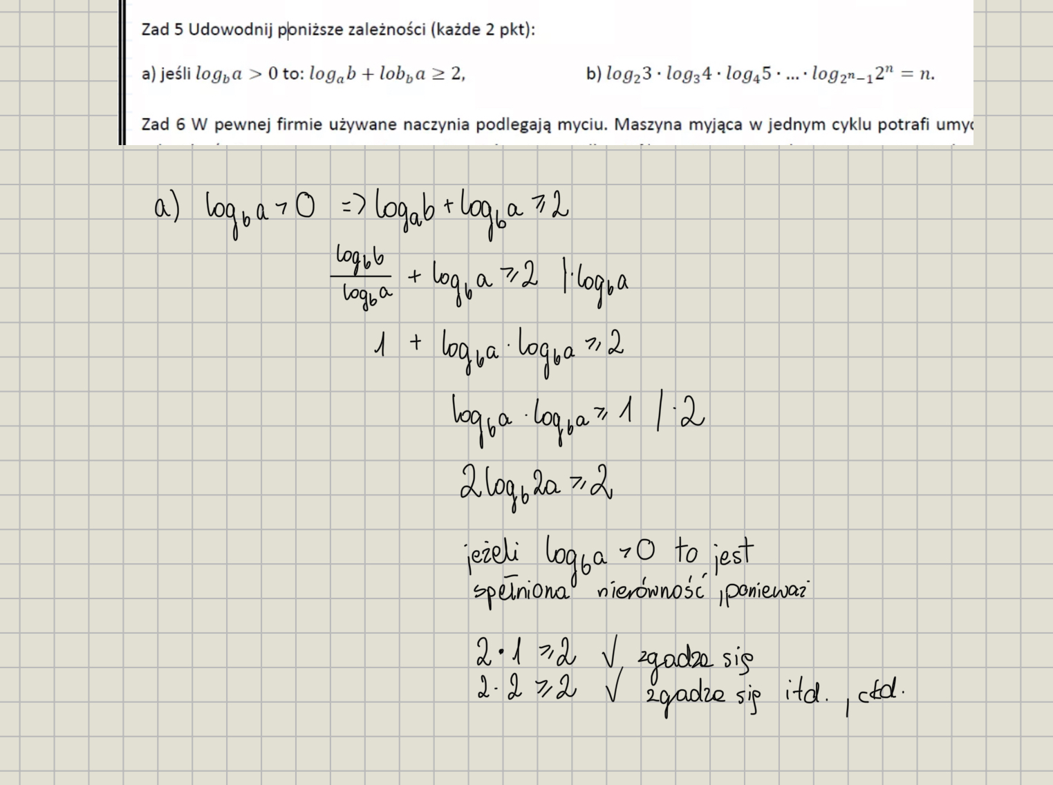 Nie ponieważ gdy mnożyłeś razy (logb a) to zapomniałeś przemnożyć prawą strone i zamiast mieć 2logb a to zostawiłeś 2