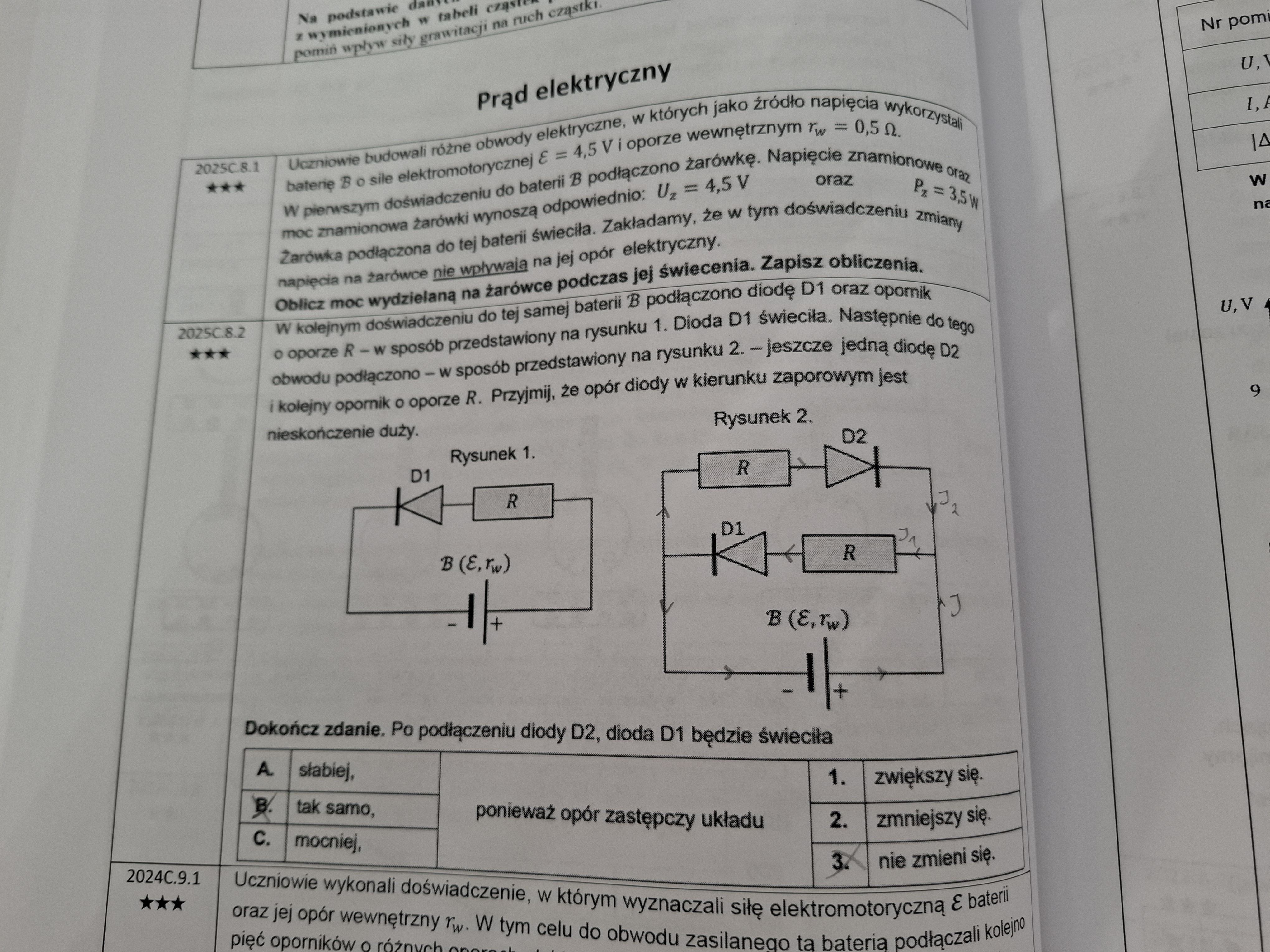 Zupełnie nie rozumiem odpowiedzi do tego zadania. Myślałem ze prąd na rysunku 2 przechodzący przez diodę D1 ma większe natężenie od prądu wychodzącego ze źródła, bo jest sumą prądu ze źródła i prądu przechodzącego przez Diodę D2. To by znaczyło że Dioda D1 by mocniej świeciła, ale tak nie jest, czego tez nie rozumiem