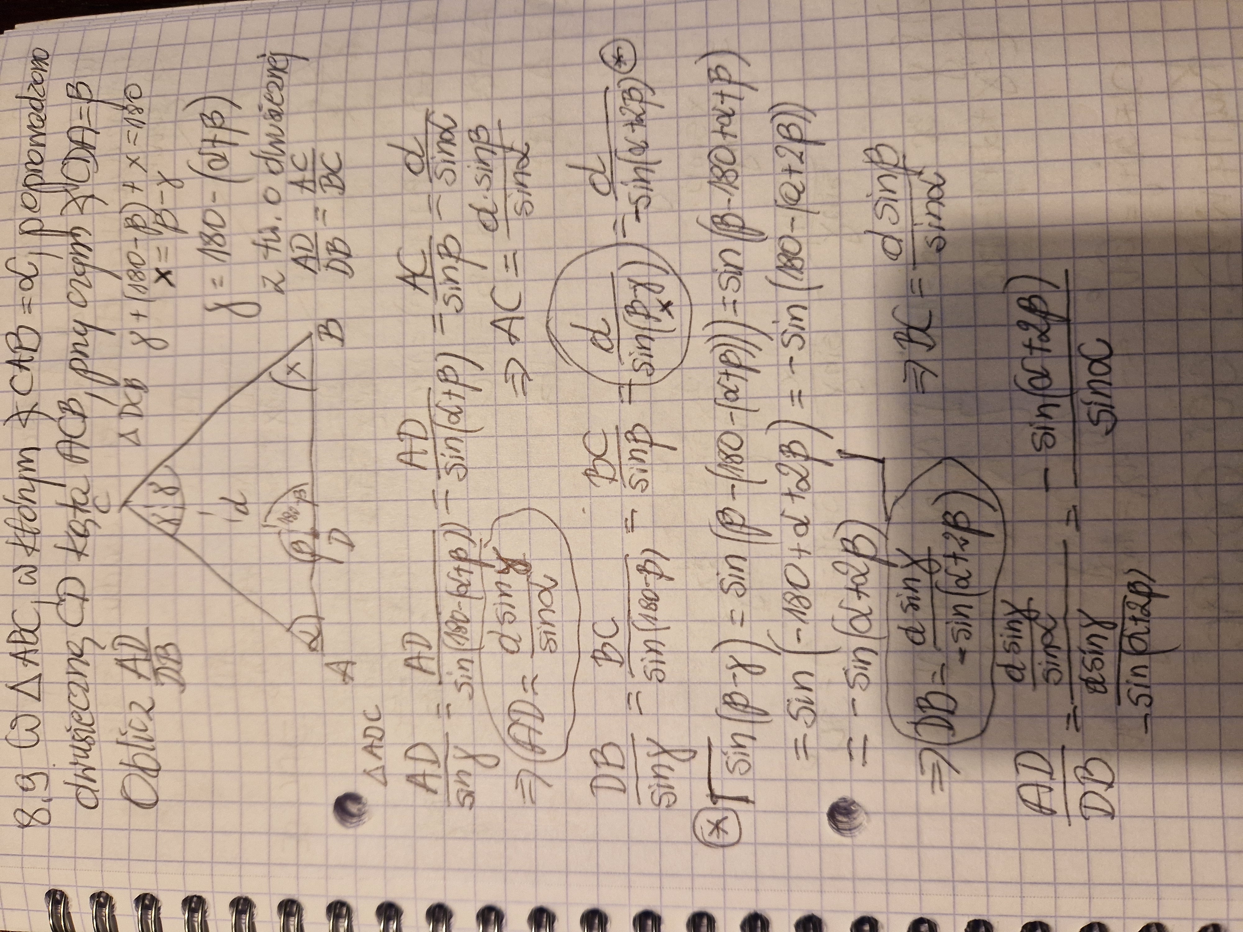 Zrobiłeś błedy przy przeksztalcaniu wzoru. Ponadto w zadaniu dane tylko alfa i beta, wiec nie moze być delta. Przesylam swoje rozwiazanie