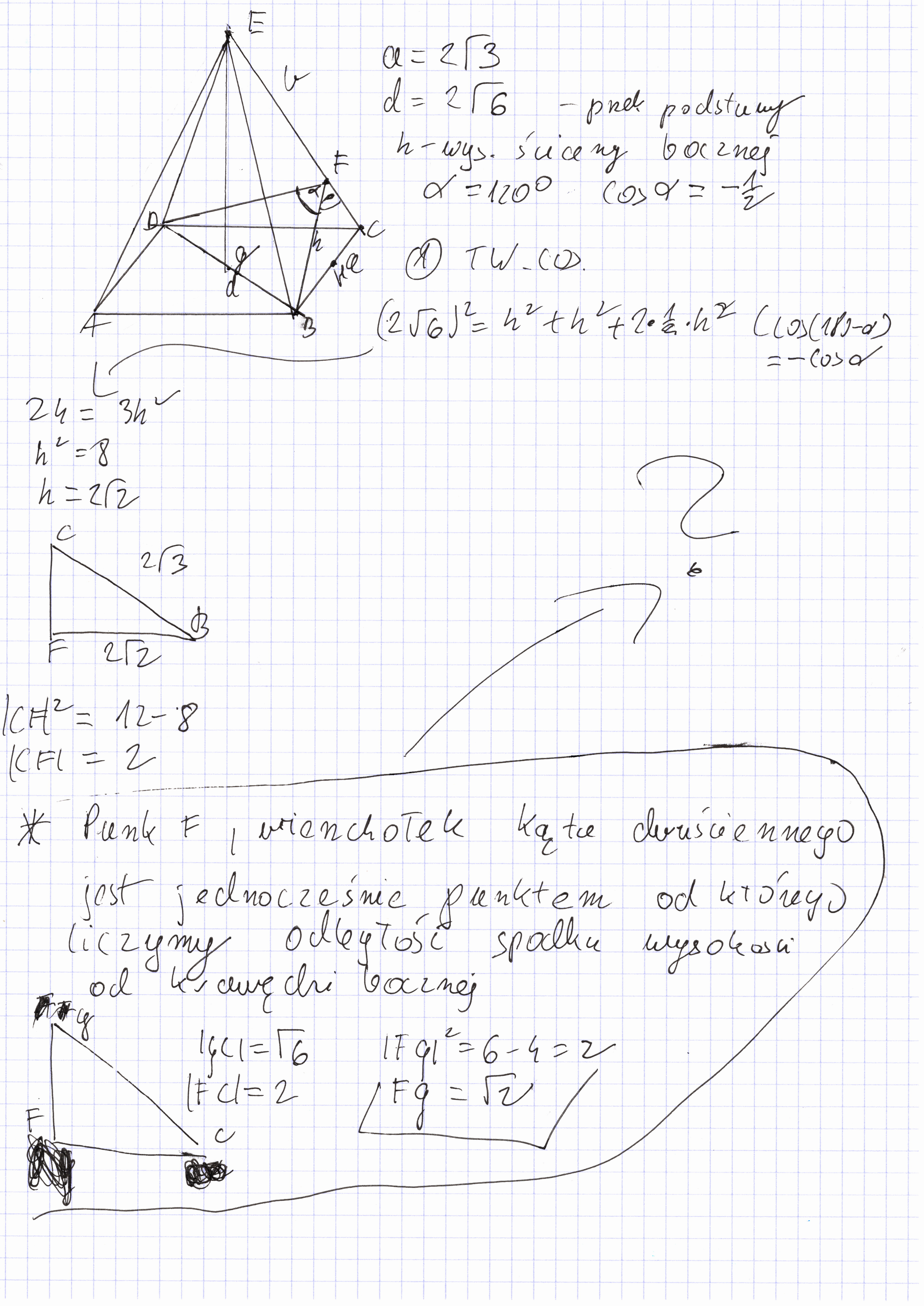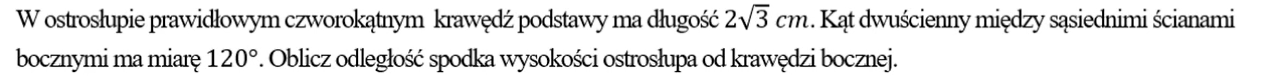 Czy w ostrosłupie prawidłowym wierzchołek kąta dwuściennego między ścianami bocznymi jest zawsze punktem od którego liczymy odległość spodka wysokości od krawędzi bocznej?