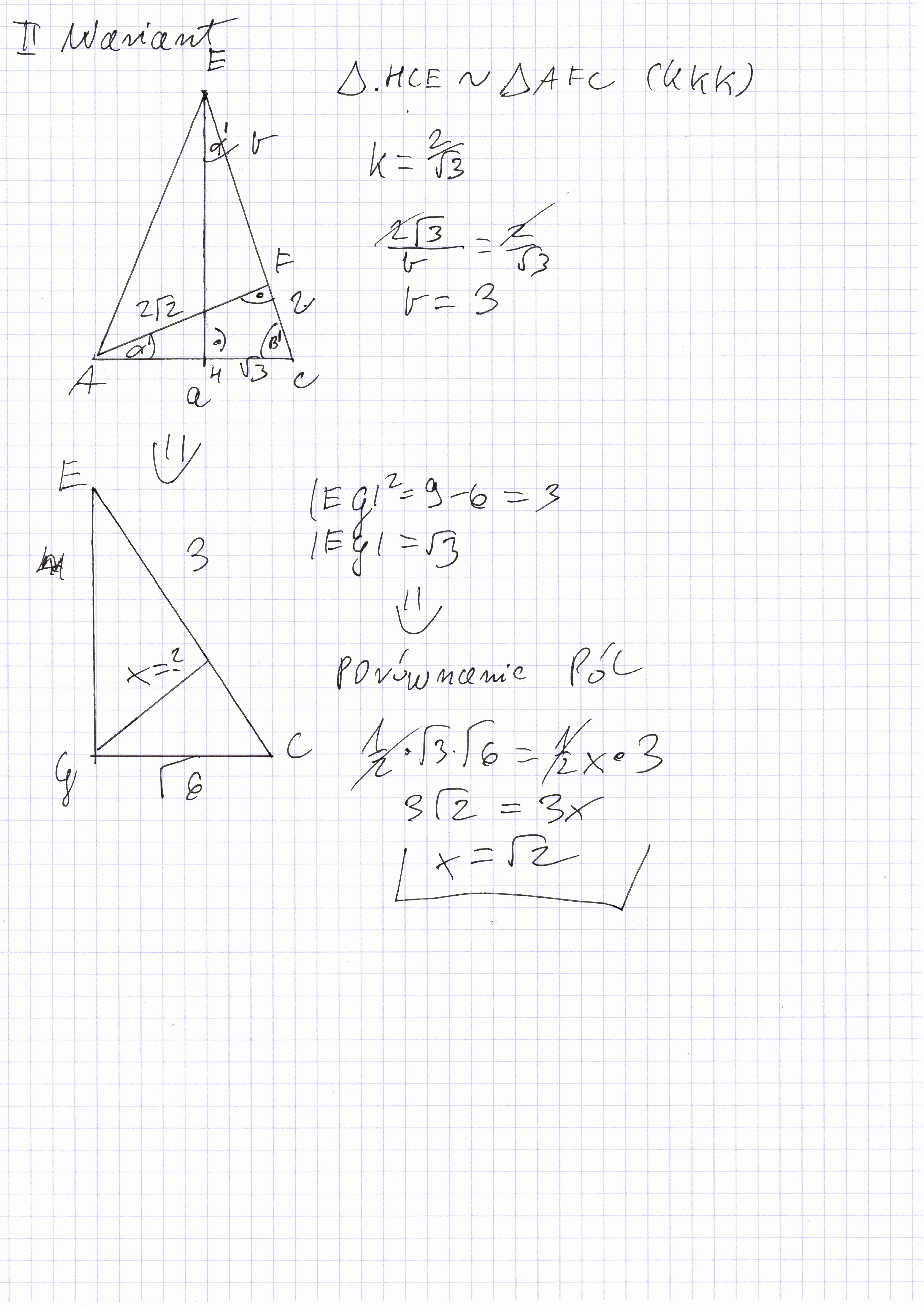 str 1 z tym "eksperymentalnym" twierdzeniem, strona druga tak jak jest na bank dobrze czyli z trojkątów podobnym w trójkącie równoramiennym