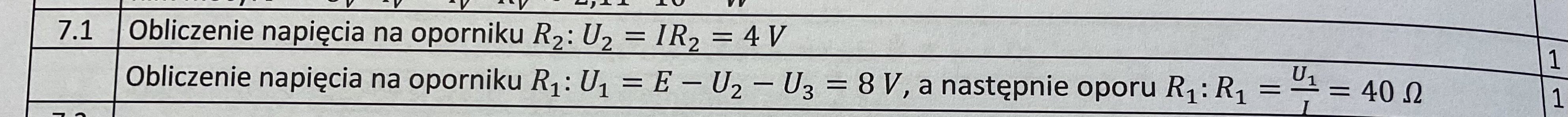 Napięcie na oporniku R4 jest dokładnie takie samo jak napięcie na oporniku R3 z uwagi na fakt, że są ono połączone ze sobą równolegle. Więc tam napięcie na nim oczywiście jest, ale tak na dobrą sprawę nie musimy go wykorzystywać, żeby obliczyć opór R1, tak jak jest to zapisane w kryteriach. I to wiąże się z tym co napisałaś (poprawnie) w ostatnim zdaniu - zawsze możemy sobie wybrać dowolne oczko i zapisać dla niego II prawo Kirchhoffa. I w kryteriach zostało to zapisane akurat dla oczka, które zawiera źródło napięcia i oporniki R1, R2 i R3 - czyli w tym oczku faktycznie nie przechodzimy przez opornik R4, więc nie ma go w tym zapisie. Ale równie dobrze można by było zapisać to II prawo Kirchhoffa dla oczka, w którym przejdziemy przez źródło napięcia i oporniki R1, R2 i R4 (zamiast R3) i równanie będzie wtedy takie: U1 = E - U2 - U4. Ale ponieważ U4 to to samo co U3, to w efekcie wynik oczywiście jest taki sam (i tak ma być).