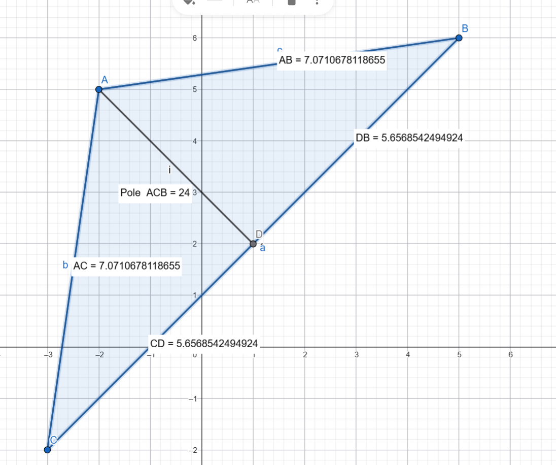 Również gdy próbowałem narysować ta sytuację w Geogebra z wynikami odpowiedzi do matury pole trójkąta jest całkowicie inne oraz długość boku BC, z czego to wynika