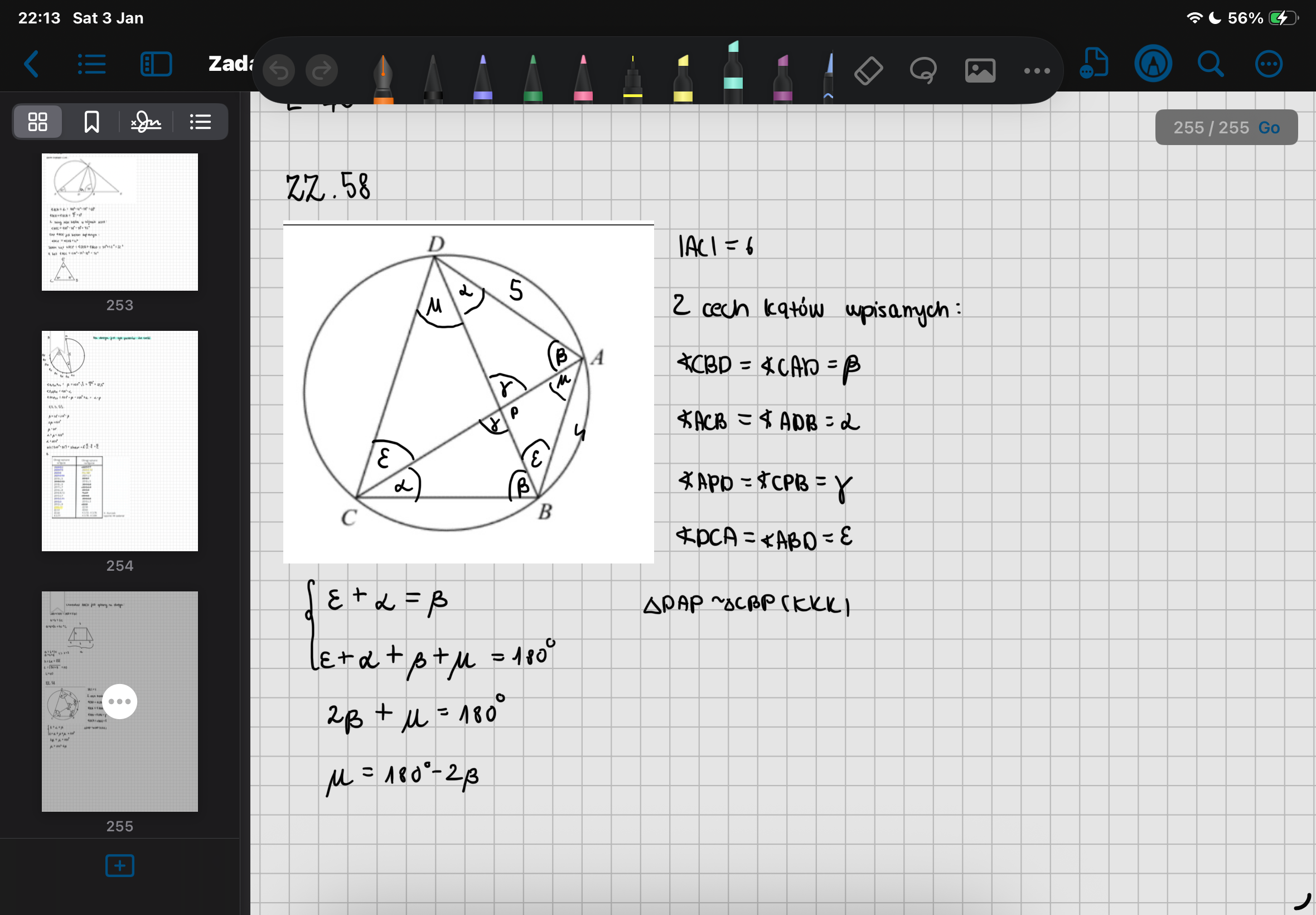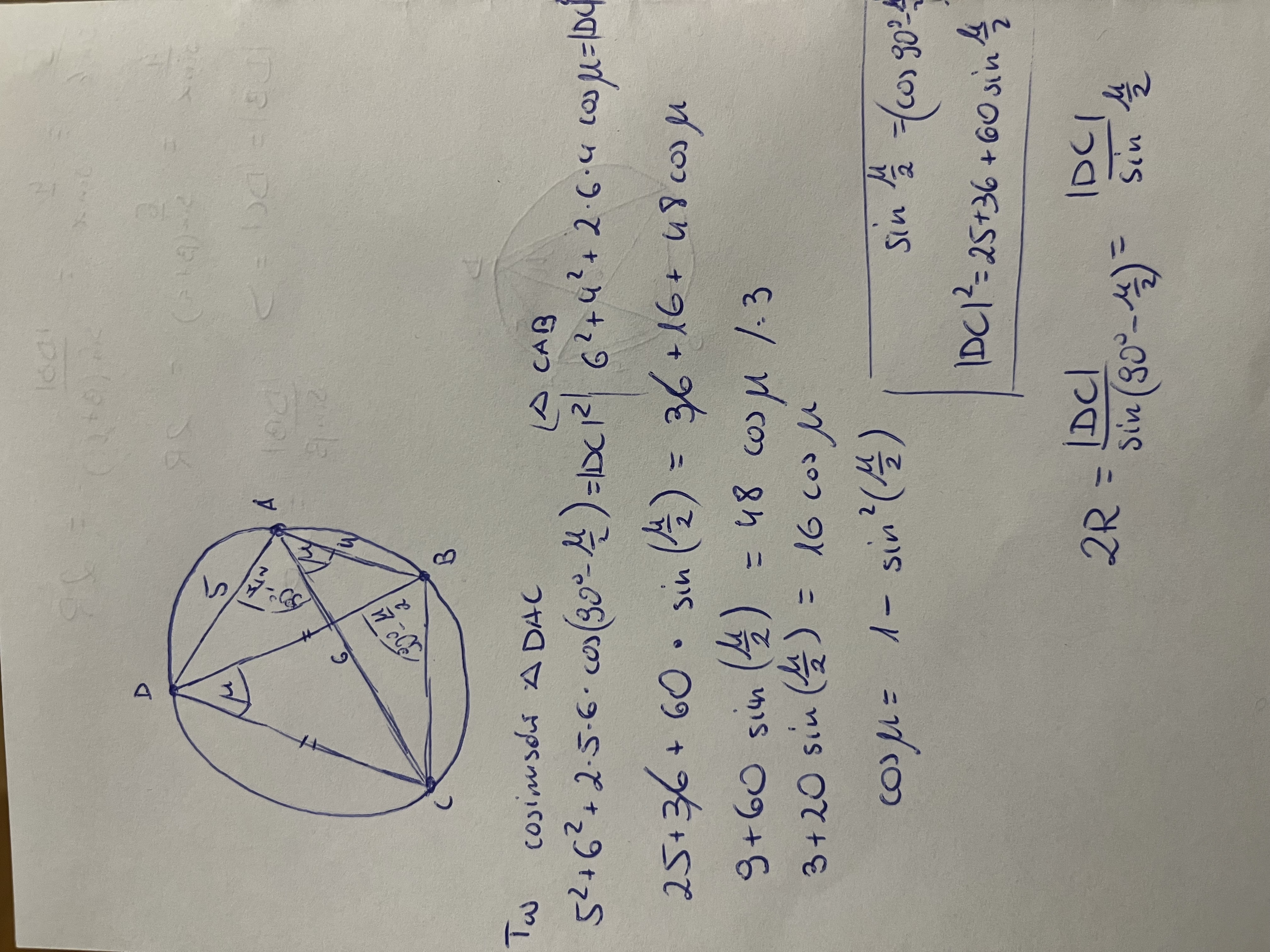 W tym zadaniu nie potrzeba wykazywać, że to trapez równoramienny. Można wykorzystać tw. sinusów i cosinusów: