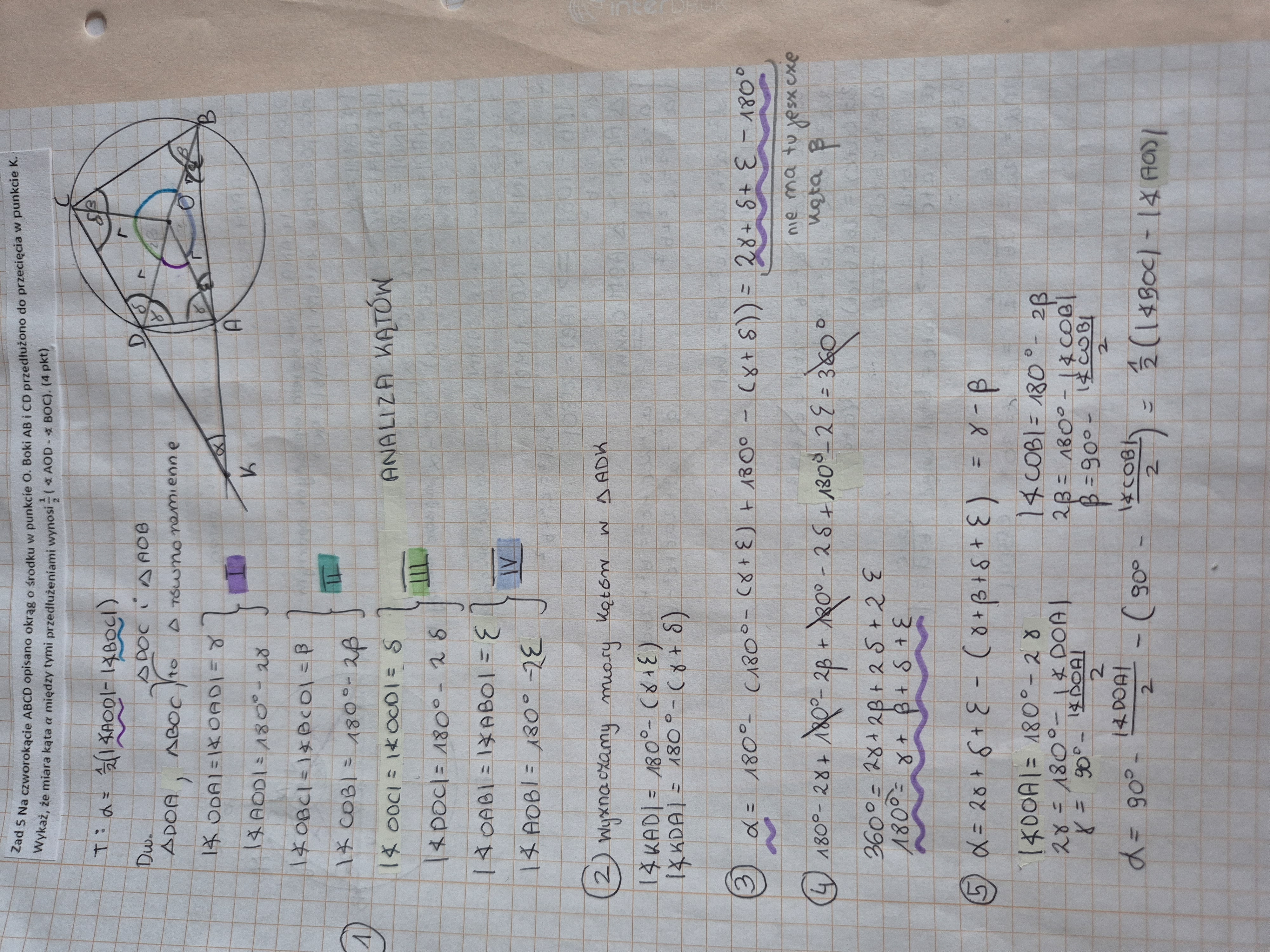 Mam pytanie, bo trochę inaczej oznaczyłam kąty i teraz odpowiedz wychodzi mi jakby na odwrót,  gdzie tu może być błąd?