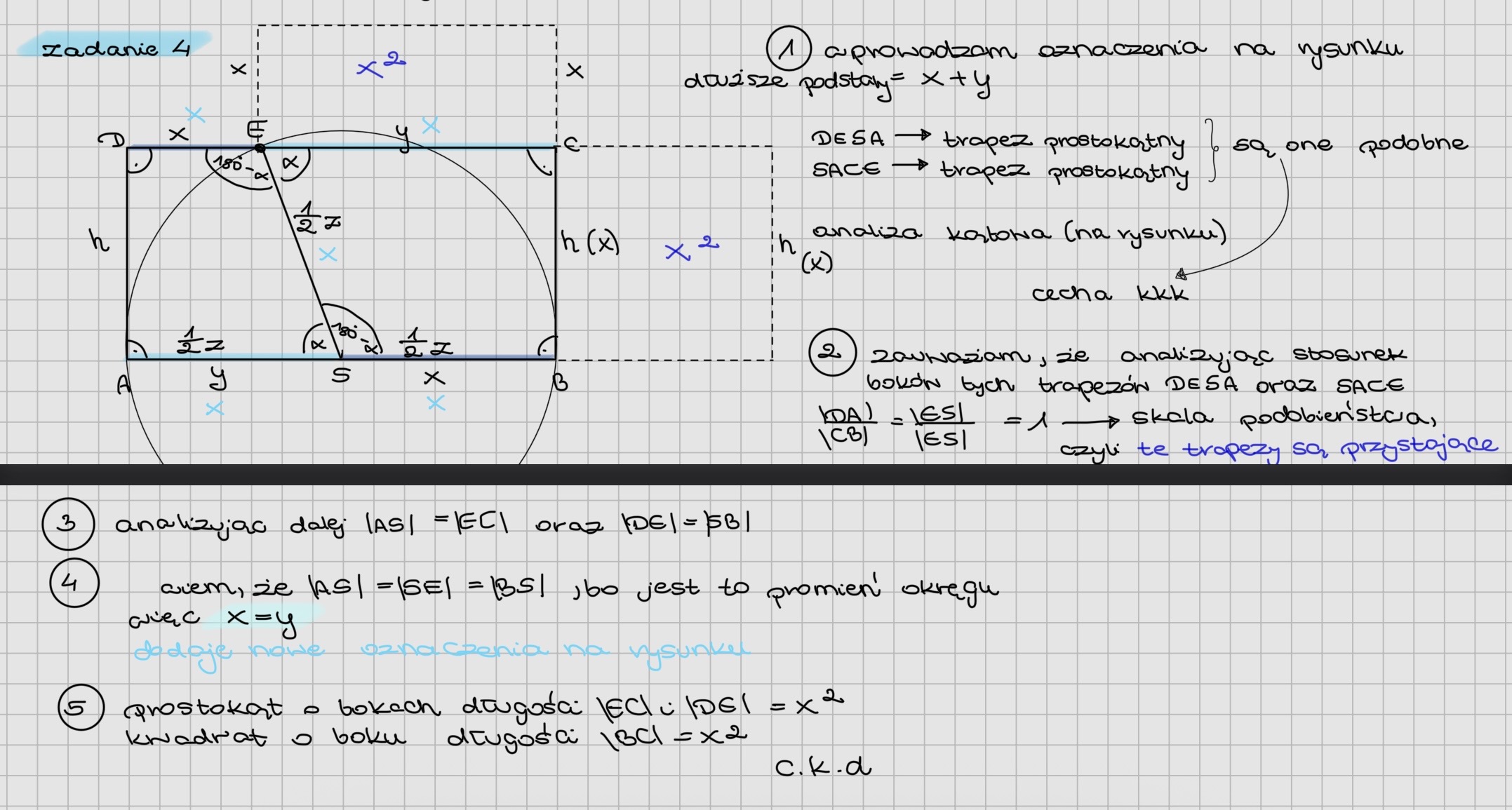 Mam wątpliwości, co do tego czy moje rozwiązanie jest poprawne, ponieważ ostatecznie wyszło mi że obie nowo utworzone figurę będą kwadratami, o boku tej samej długości, czy jest to możliwe? Czy mam jakiś błąd w założeniach ?