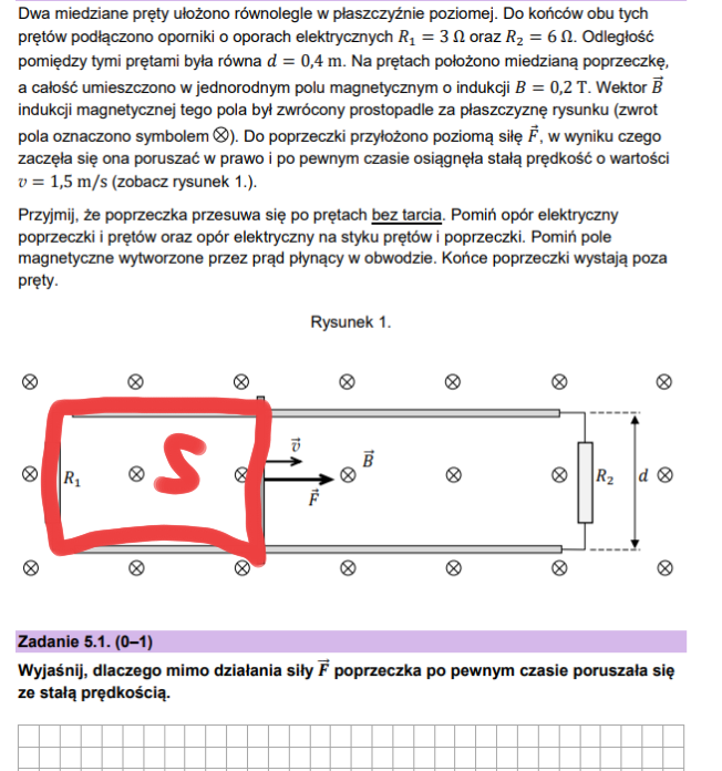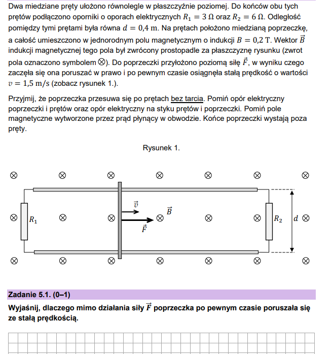 odpowiedź: Zgodnie z regułą Lenza prąd indukcyjny w poprzeczce płynie tak, że siła elektrodynamiczna