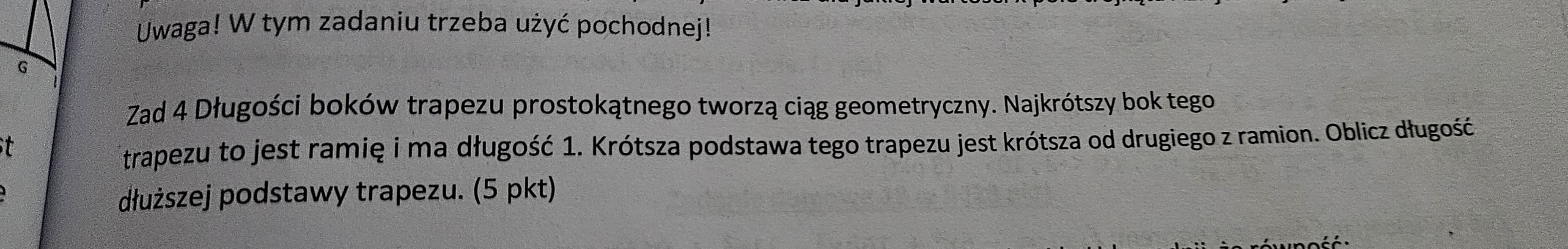 Czy możemy od razu założyc, z informacji podanych w zadaniu, że drugie ramie trapezu jest krótsze od dłuższej podstawy i dlaczego tak jest?