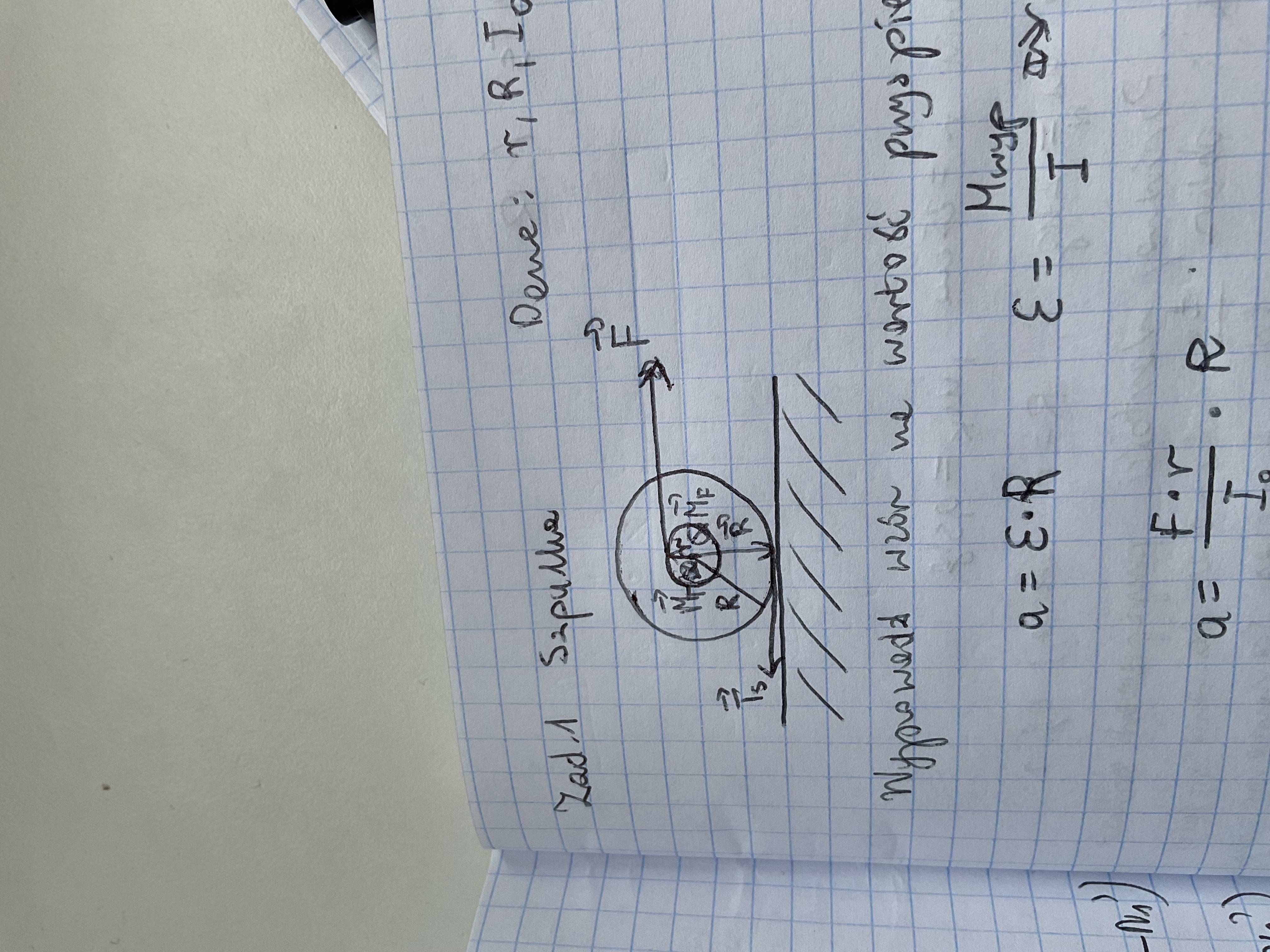 (ogólnie z obliczeń wychodziło dobry wynik niezależnie od tego w którą stronę narysowało się tarcie ale trochę inaczej wyglądają równania)